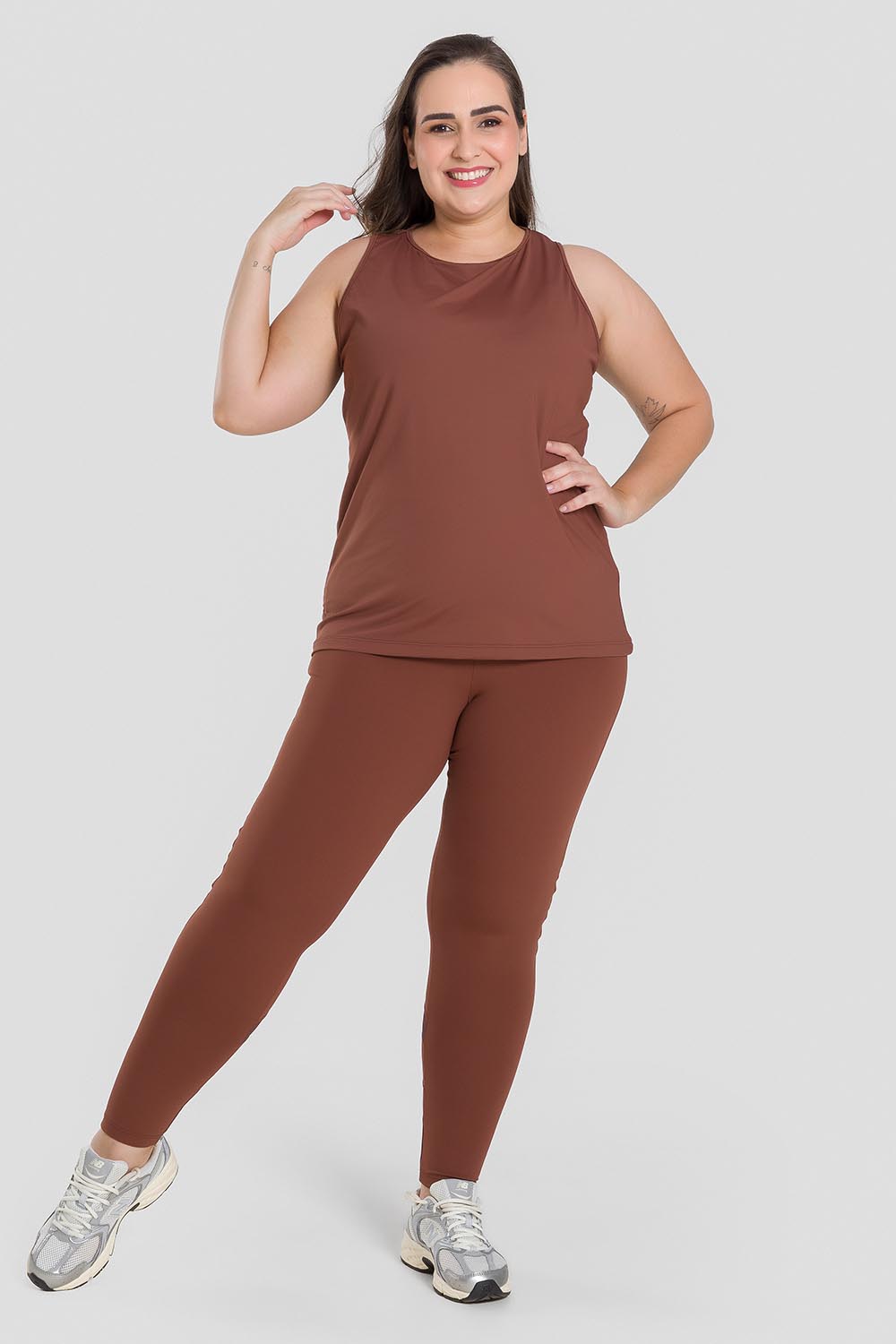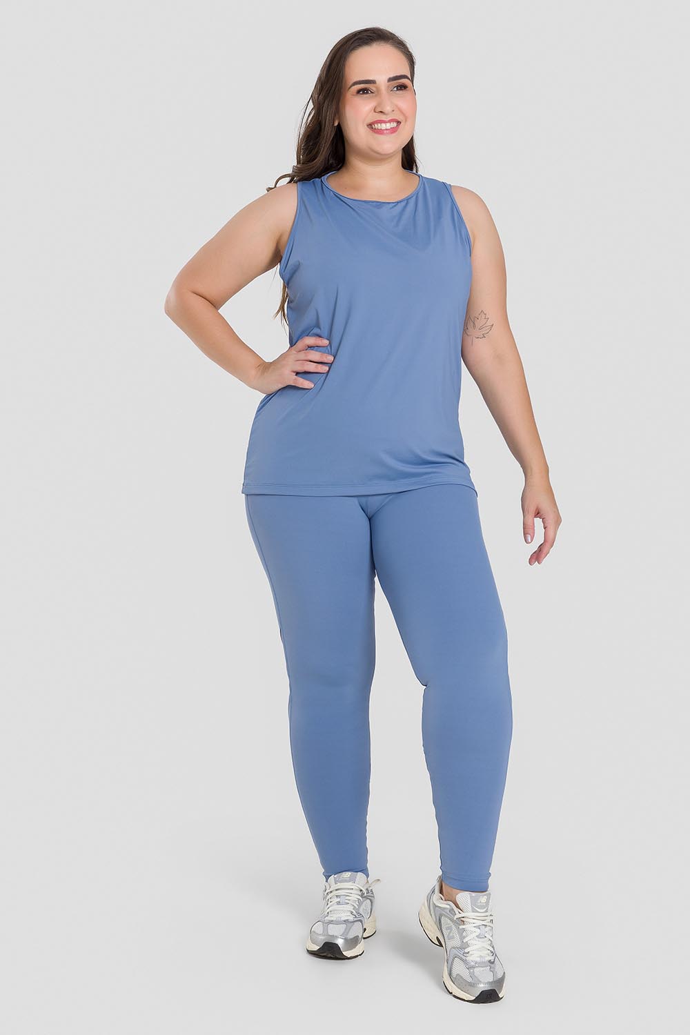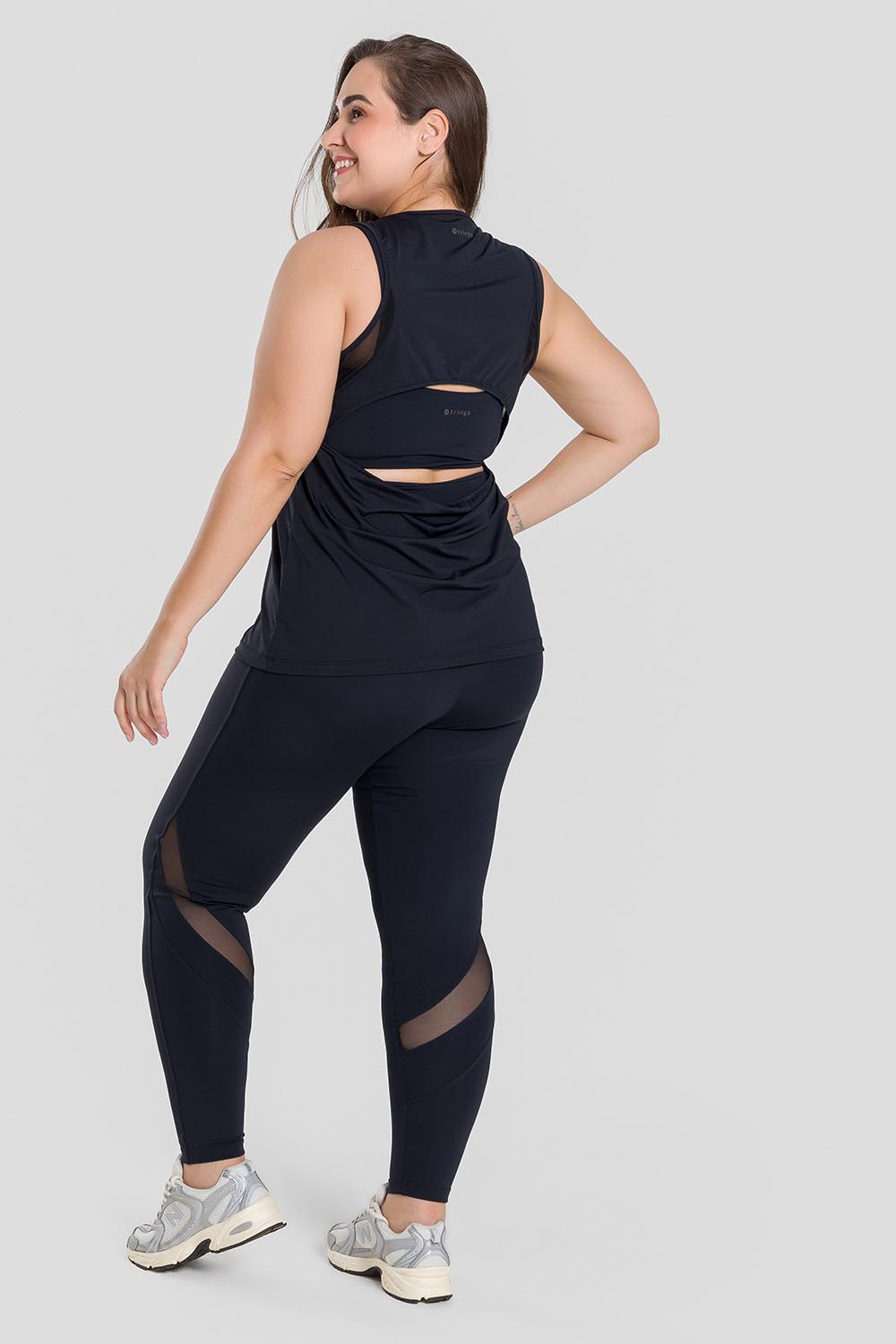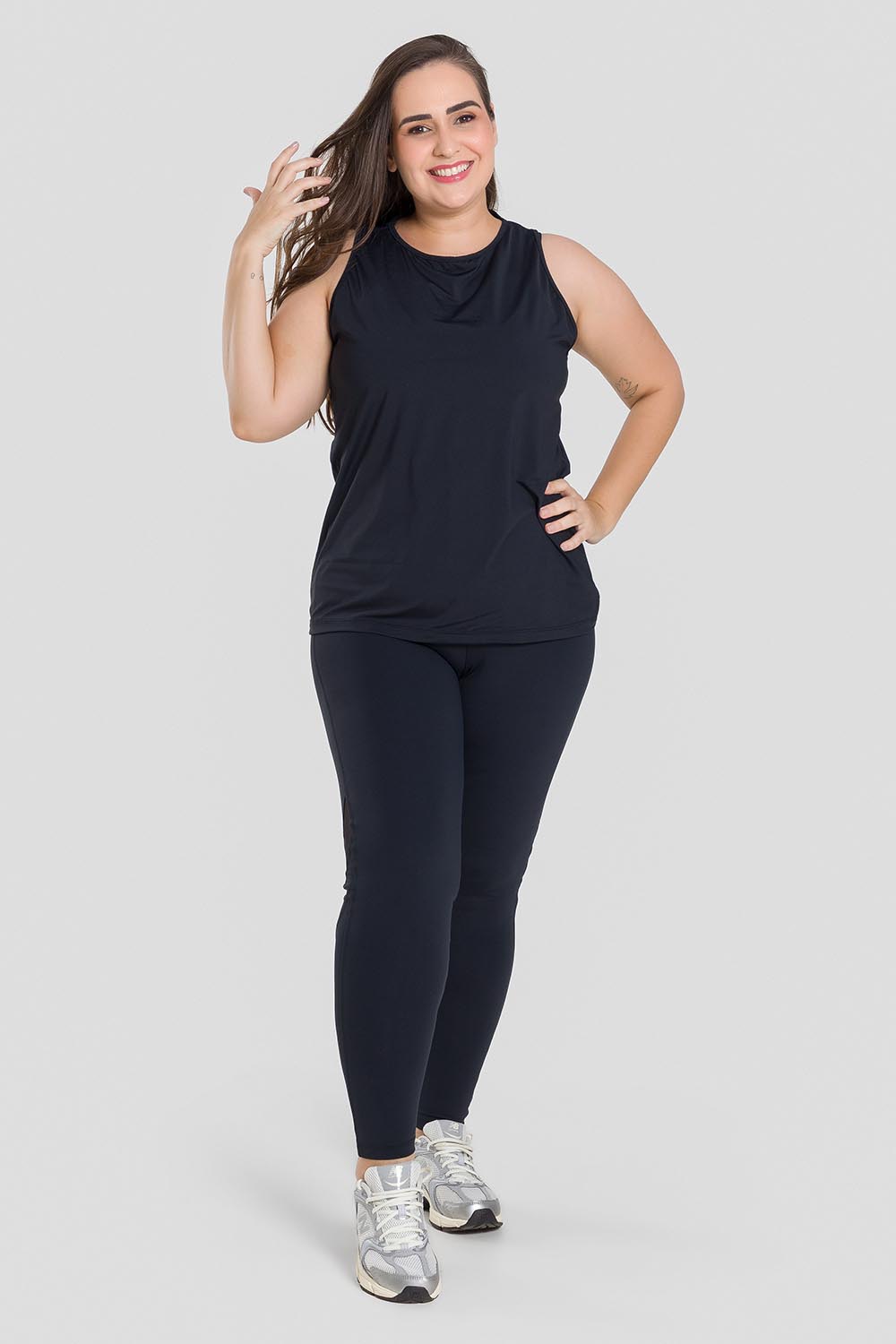 Blusa femenina adulto en tallas grandes, sin mangas, con detalle de tul elástico y amplio hoyo en la espalda. Hecha en tela Luna, muy liviana, de apariencia opaca, toque súper agradable, excelente caída y elasticidad,, además de ofrecer protección U.V.