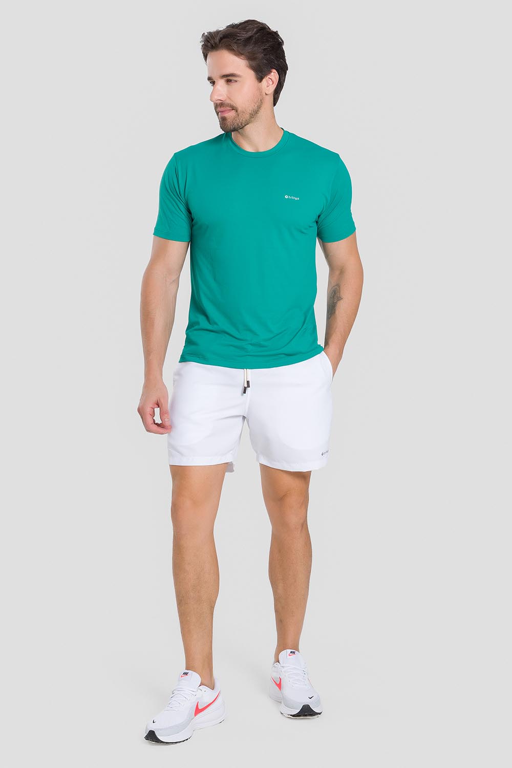 Blusa masculina adulto de moldeado básico con mangas cortas y logo Trinys en el lado derecho delantero. Hecha en tela UTB, de toque súper cómodo, fresco y agradable, además de ser liviana, de alta calidad y excelente caída.