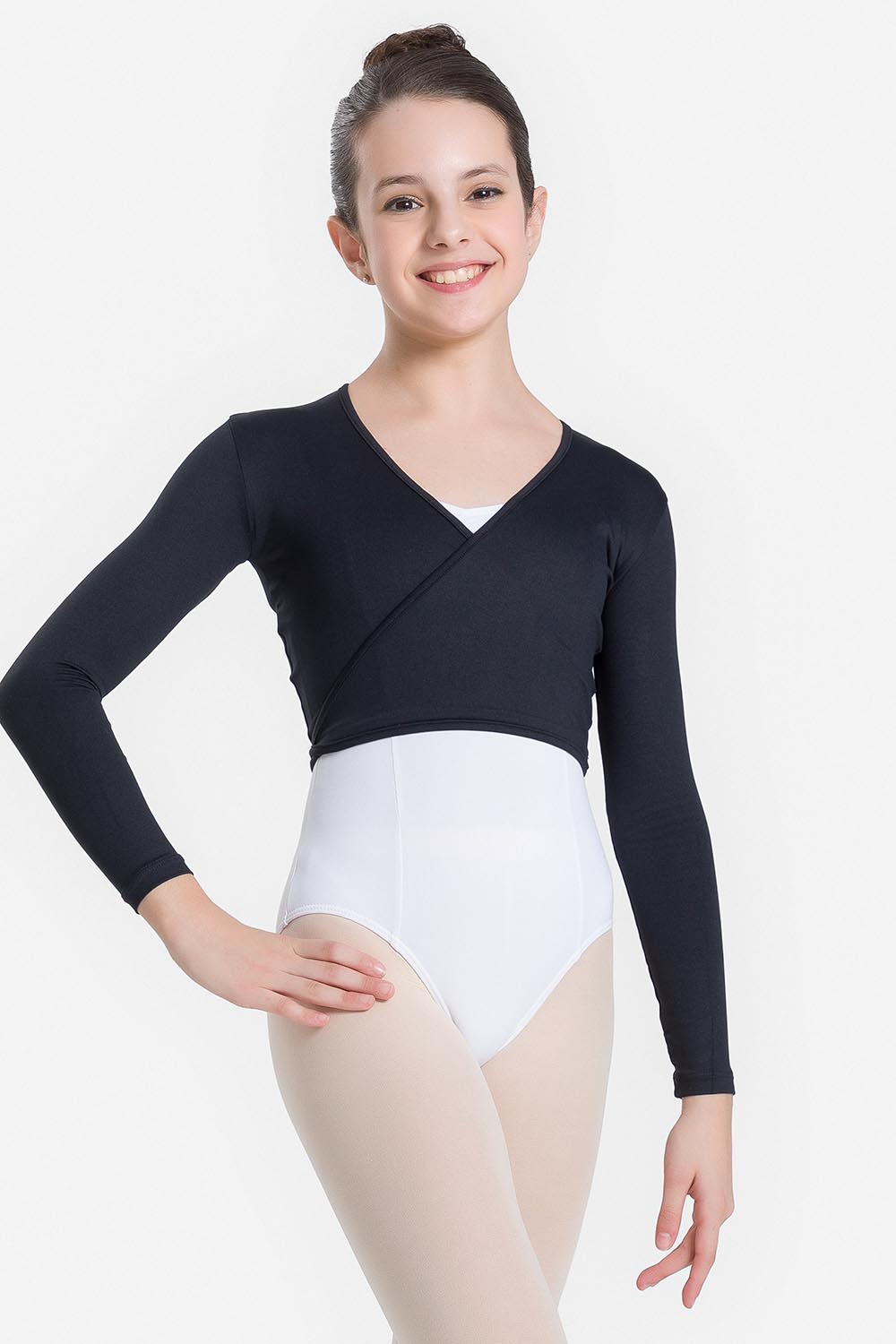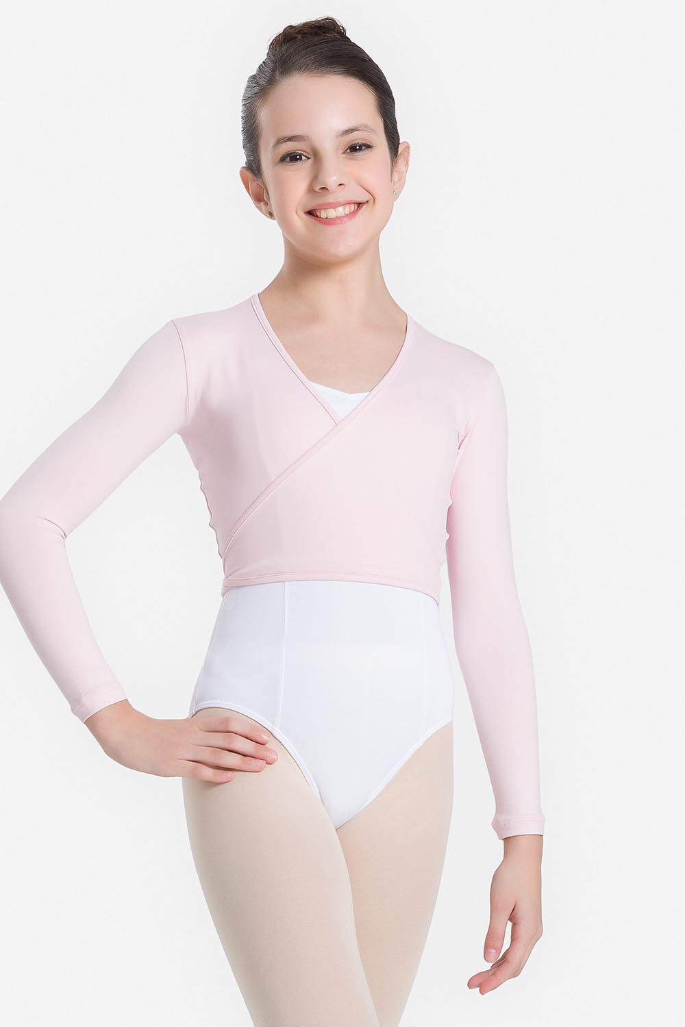 Chaqueta corta femenina infantil con traslapado delantero y cordón para amarre. Hecha en tela Microfiber, súper cómoda.