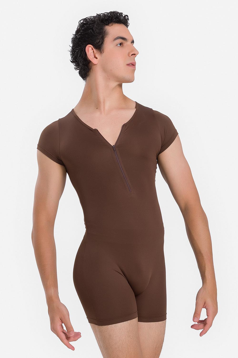 – Piernas cortas, cremallera en parte delantera y mangas cortas