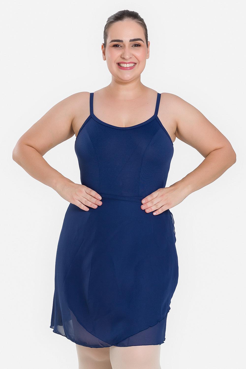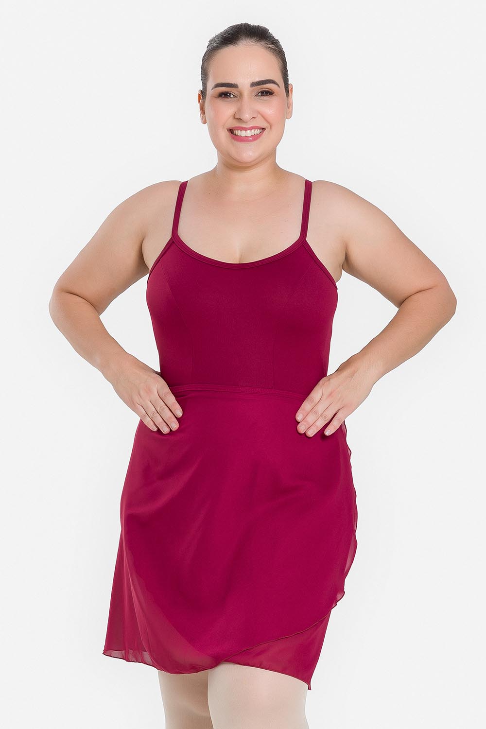 Falda adulto, de largo a media pierna, traslapada en la parte delantera y con cordón para amarre, para más practicidad al ponerse. Hecha de tela crep semi transparente, liviana y con perfecta caída.