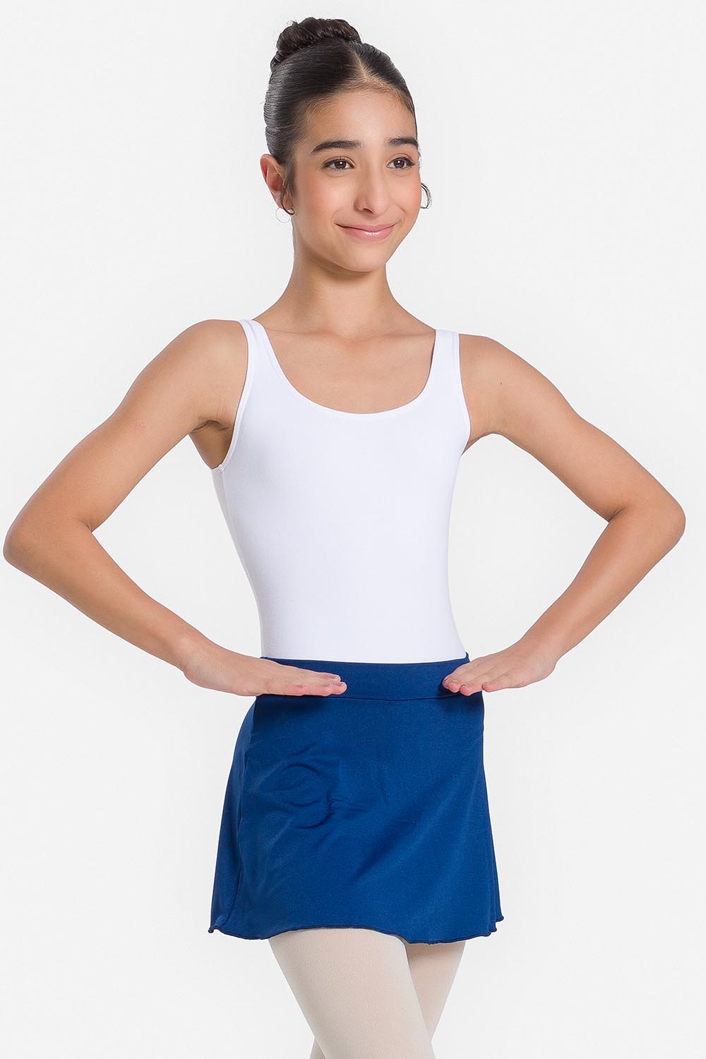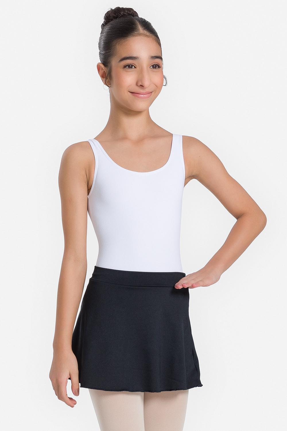 Falda corta infantil hecha en tela microfibra stretch.