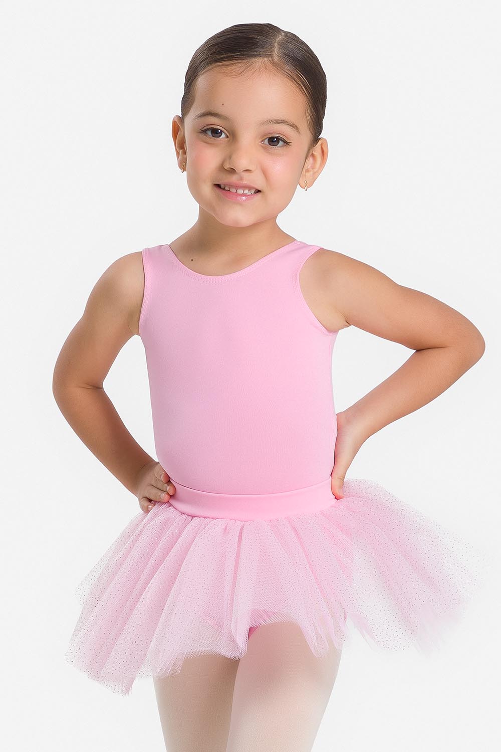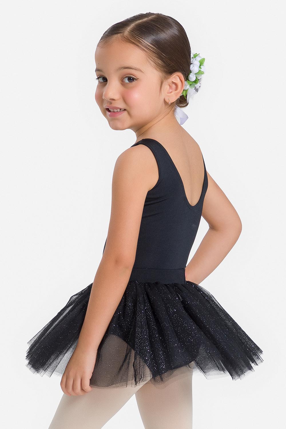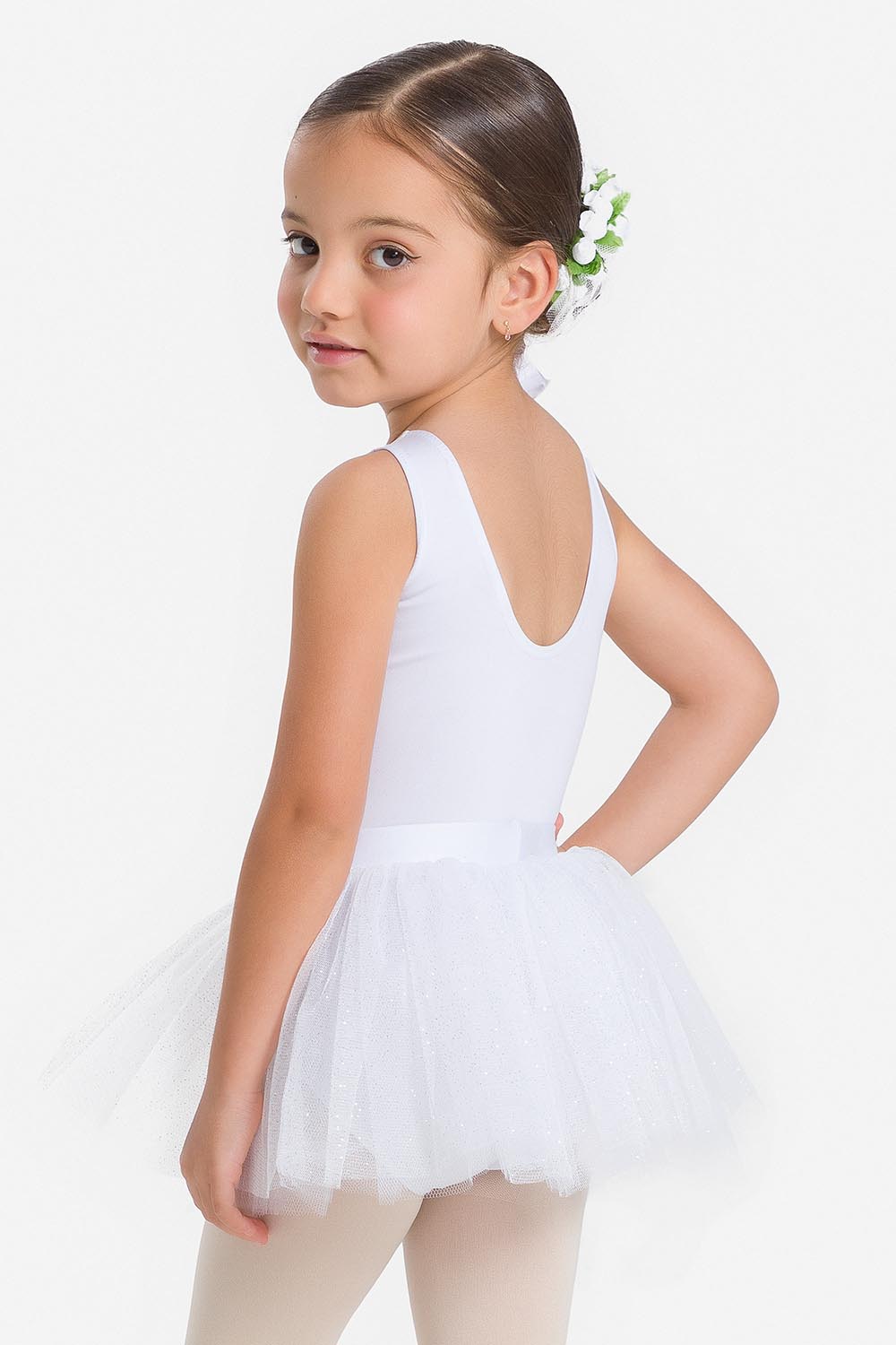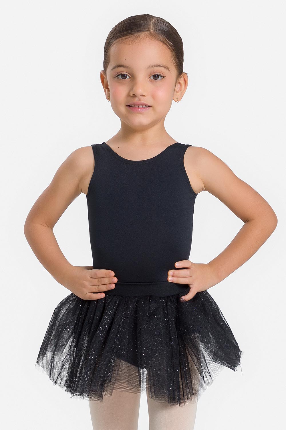 Falda infantil hecha de tul con brillo superpuesto a capas de tul, con pretina de tela microfibra stretch.