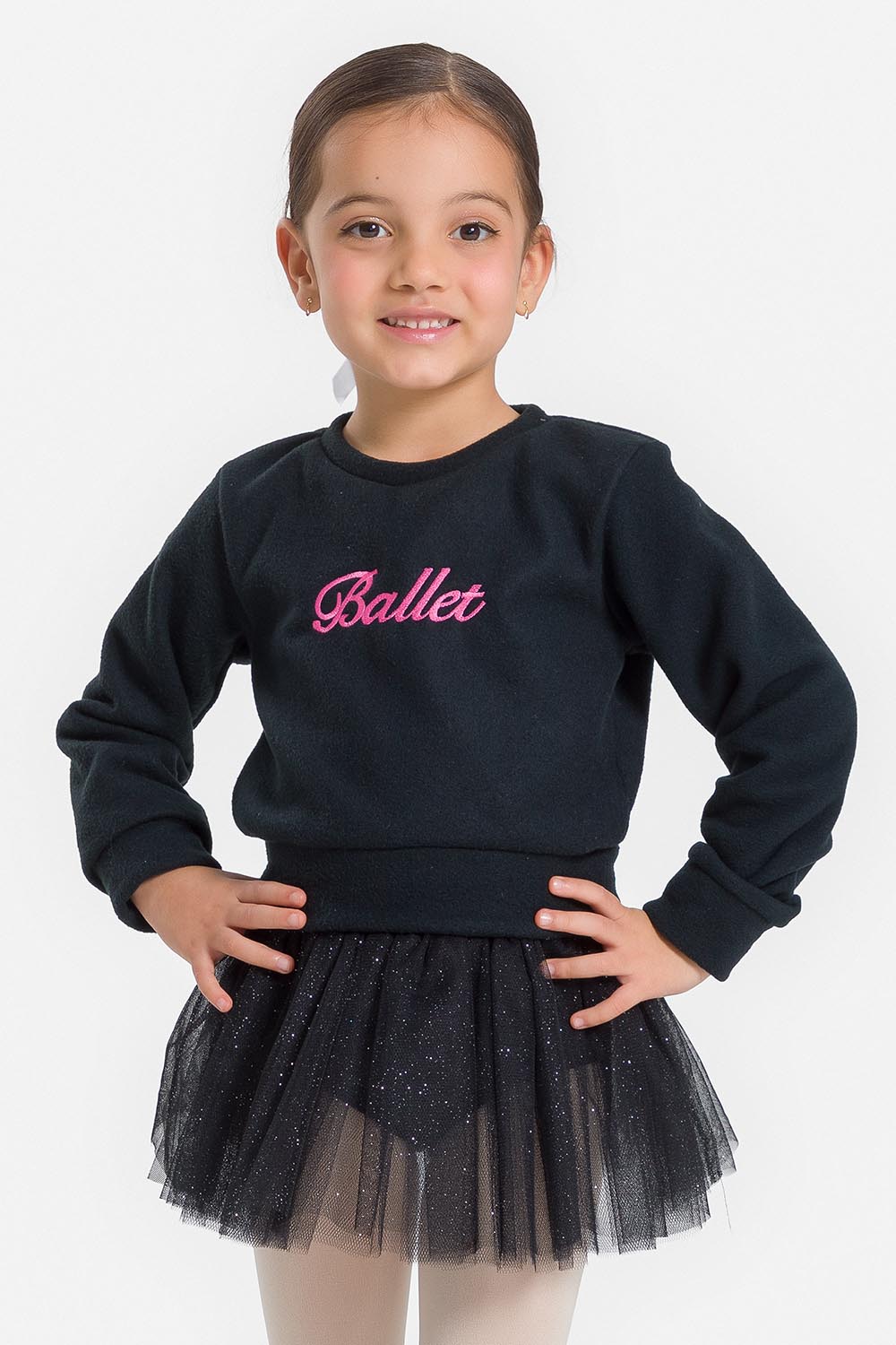 Blusa femenina infantil de mangas largas, cuello redondo, estampado Ballet en la parte delantera. Hecha de tela súper blanda y cómoda para los días frescos.
