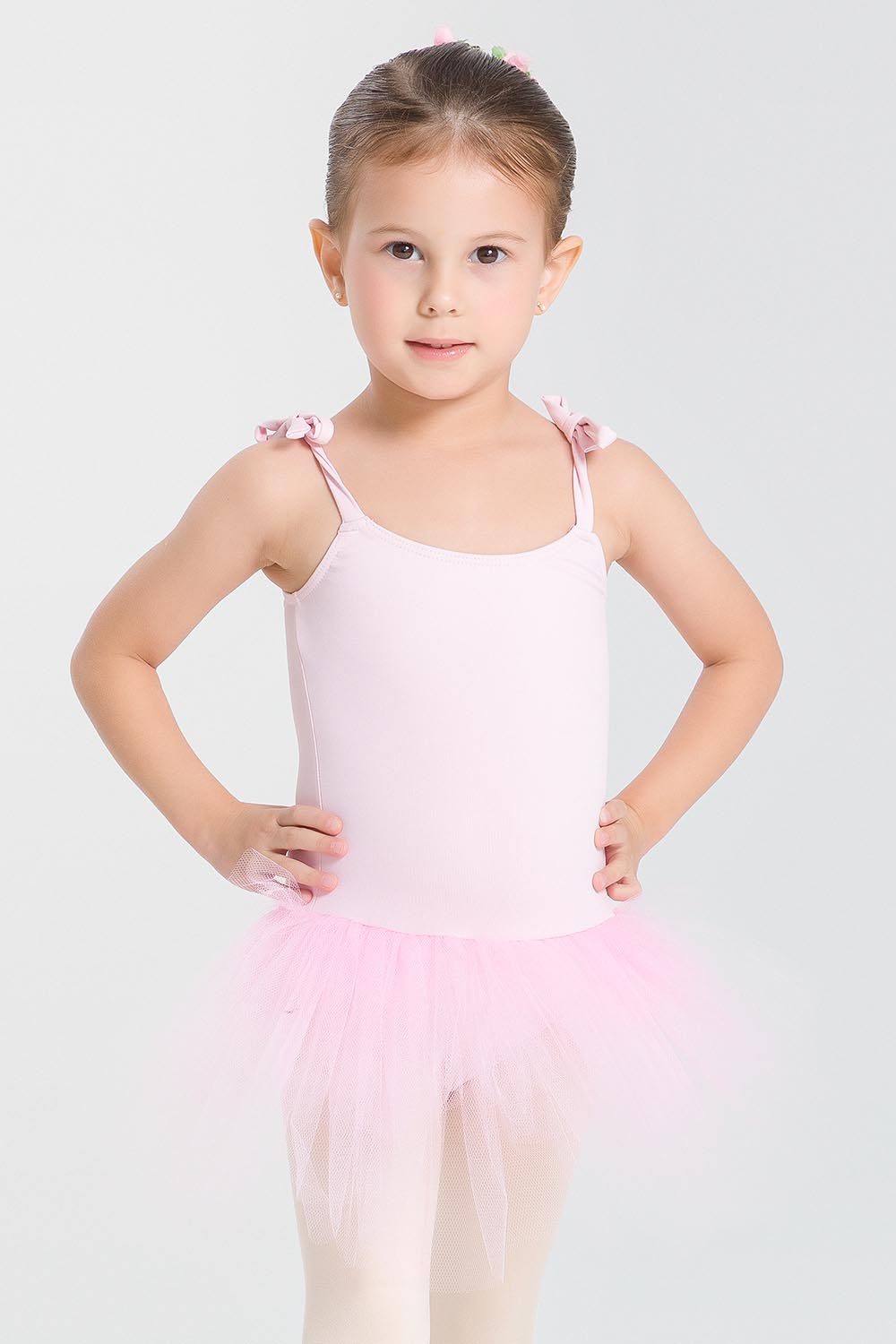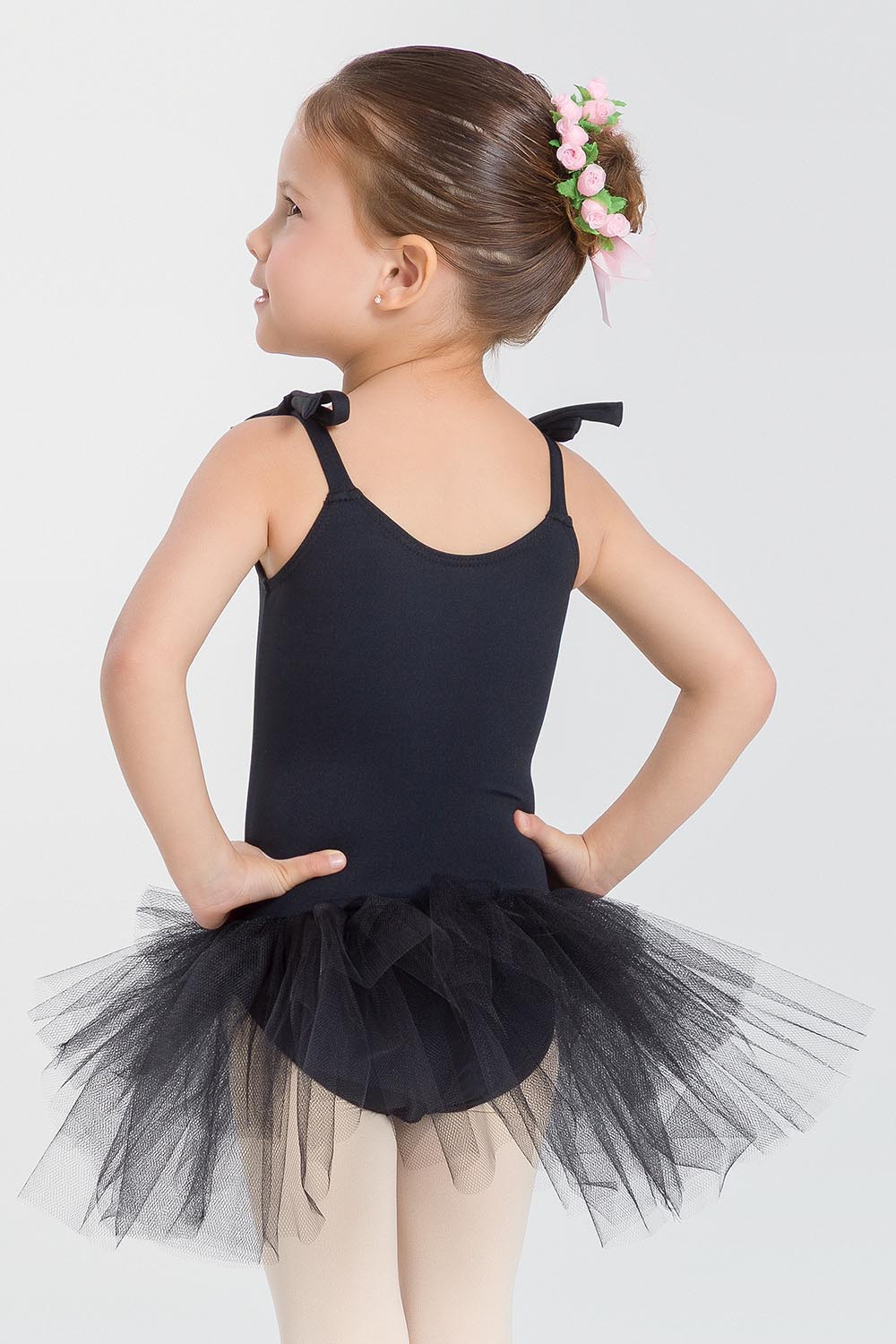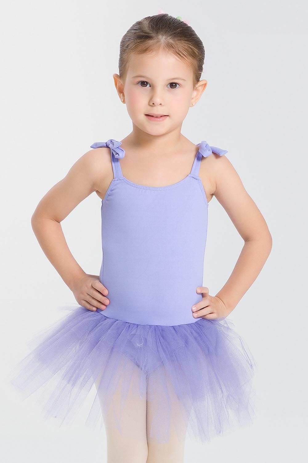 Leotardo con falda en tallas infantil. Con anchos tirantes para amarrar en los hombros y falda volante de tul. Hecho en tela microfibra con elastano en combinación con el exclusivo moldeado Só Dança para que la bailarina se mueva libremente mientras los dobladillos se mantienen fijos en sus debidos lugares, garantizando más comodidad y seguridad.