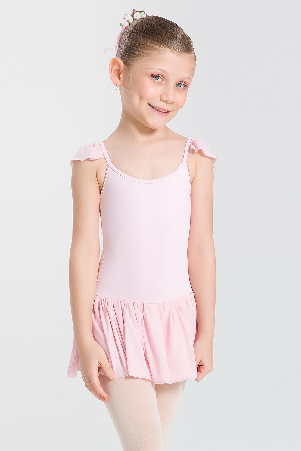 Leotardo con falda en tallas infantil. Con escote redondo, estrechos tirantes con volantes y falda fruncida de tul elástico. Hecho en tela microfibra con elastano en combinación con el exclusivo moldeado Só Dança para que la bailarina se mueva libremente mientras los dobladillos se mantienen fijos en sus debidos lugares, garantizando más comodidad y seguridad.