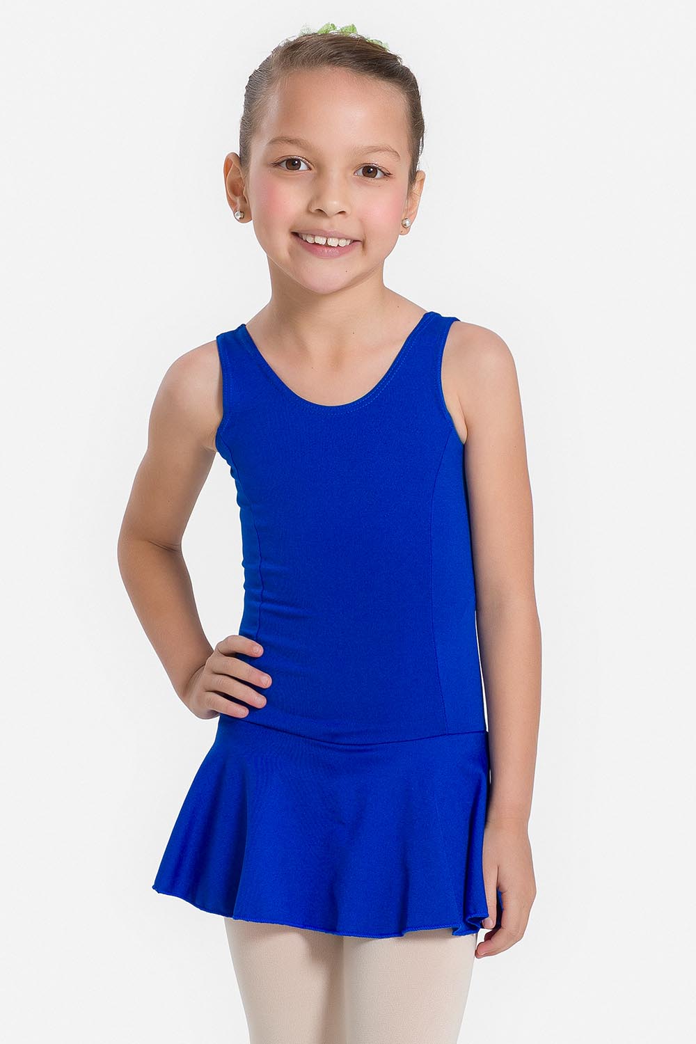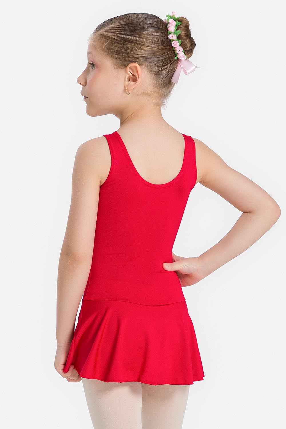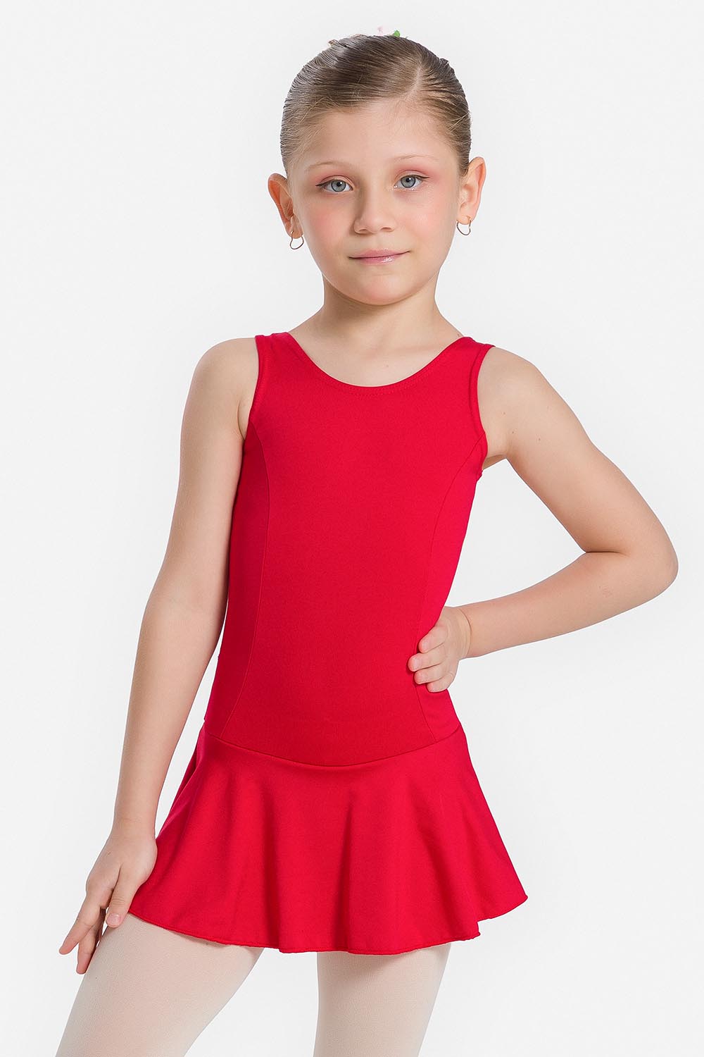 Leotardo con falda en tallas infantil y adulto. Con tirantes anchos y escote redondo y falda. Hecho en tela microfibra stretch con falda para ofrecer libertad de movimiento y seguridad.