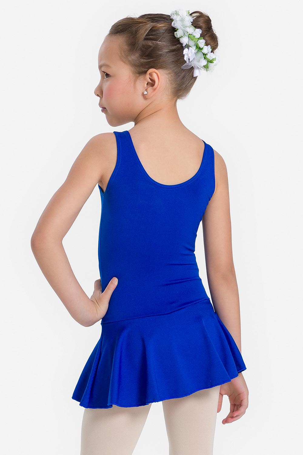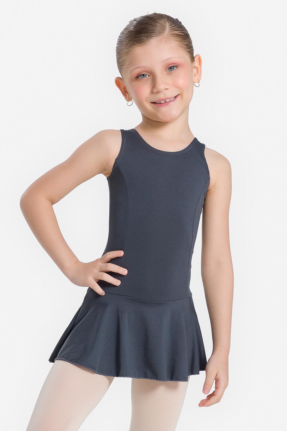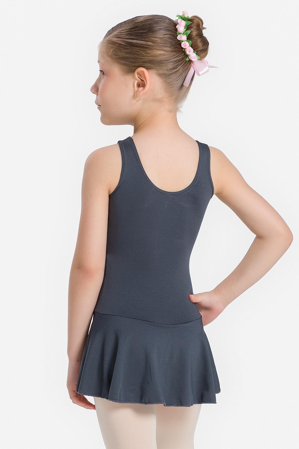Leotardo con falda en tallas infantil y adulto. Con tirantes anchos y escote redondo y falda. Hecho en tela microfibra stretch con falda para ofrecer libertad de movimiento y seguridad.
