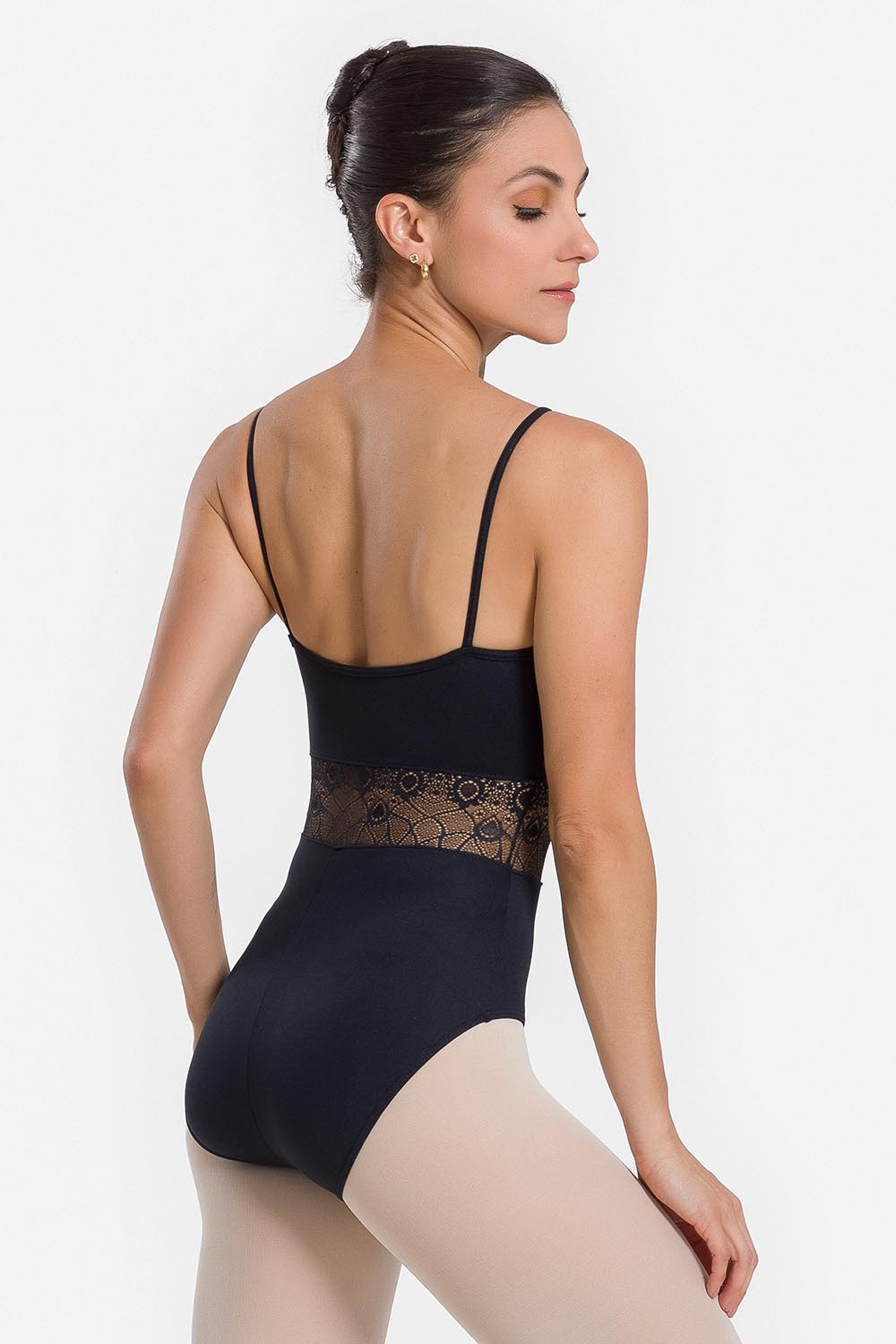 Leotardo femenino adulto con cuello recto alto y tirantes finos y encaje insertado en la cintura y el escote. Hecho en LIGHT®, una tela muy liviana de hilos poliamida y elastano de la más alta calidad para seguir todos los movimientos del cuerpo, con cuello y pretina de encaje de mismo color.