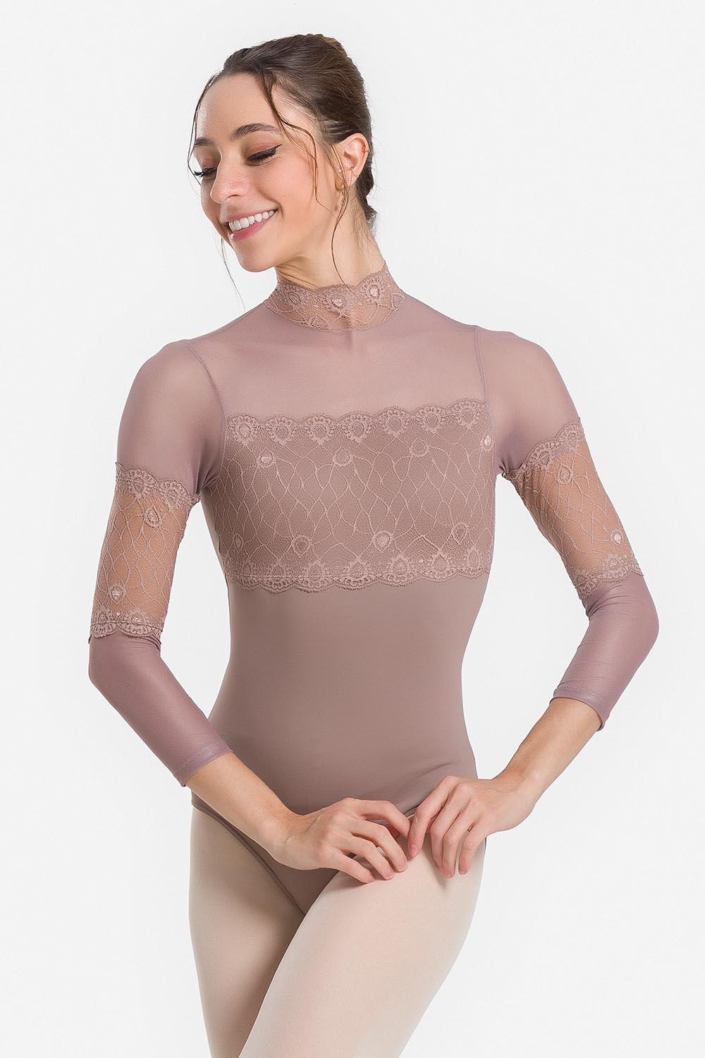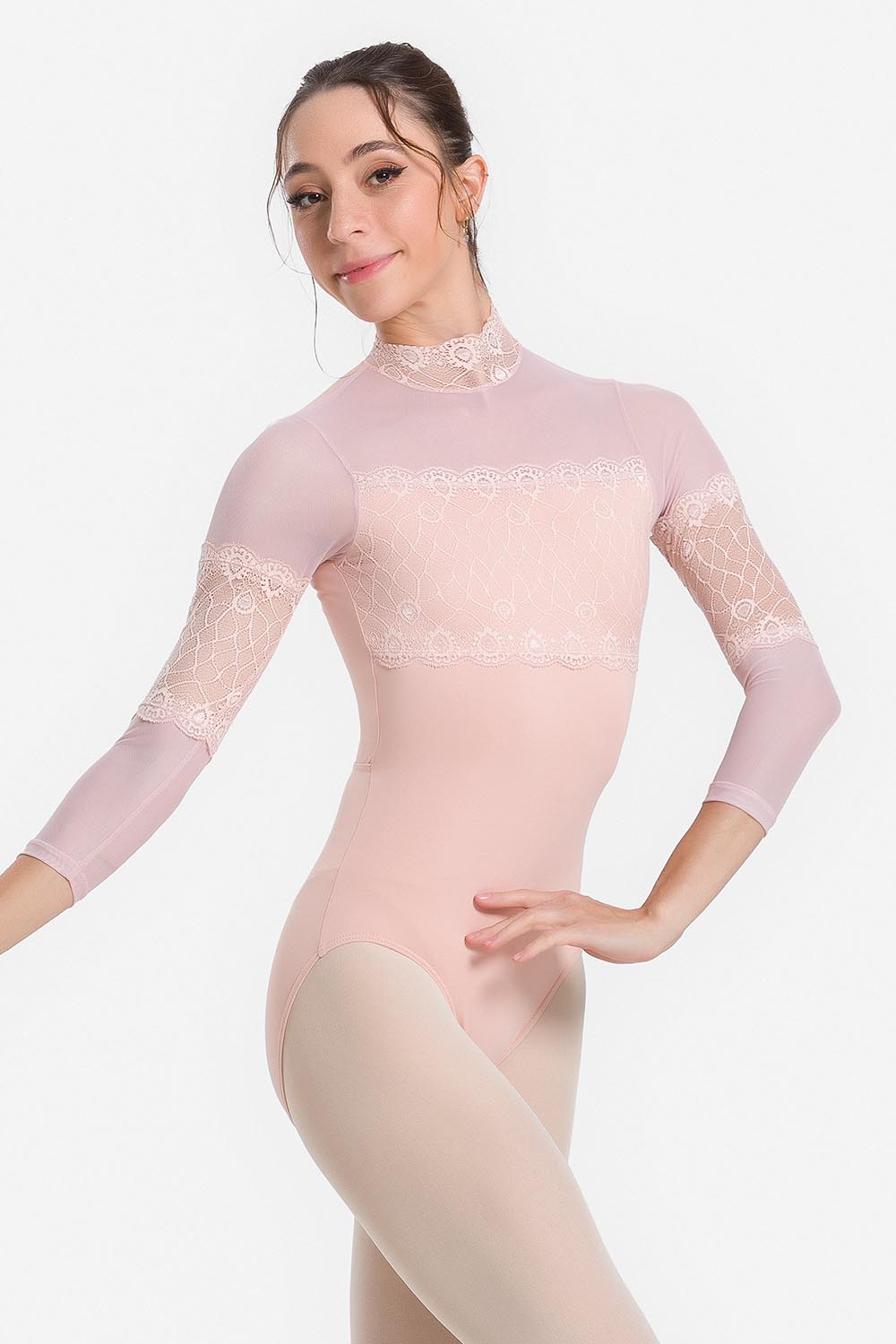 Leotardo femenino adulto con cuello tortuga en encaje, cierre y hoyo en la esaplda. Encaje superpuesto en el busto e insertado en las mangas de tul elástico. Hecho en LIGHT®, una tela muy liviana de hilos poliamida y elastano de la más alta calidad para seguir todos los movimientos del cuerpo en combinación con el exclusivo moldeado Só Dança para que la pequeña bailarina se sienta totalmente libre para moverse sin que los dobladillos se muevan de sus debidos lugares. El forro en la parte delantera dale a las niñas aún más seguridad y comodidad.