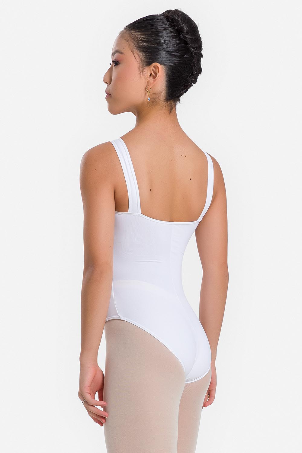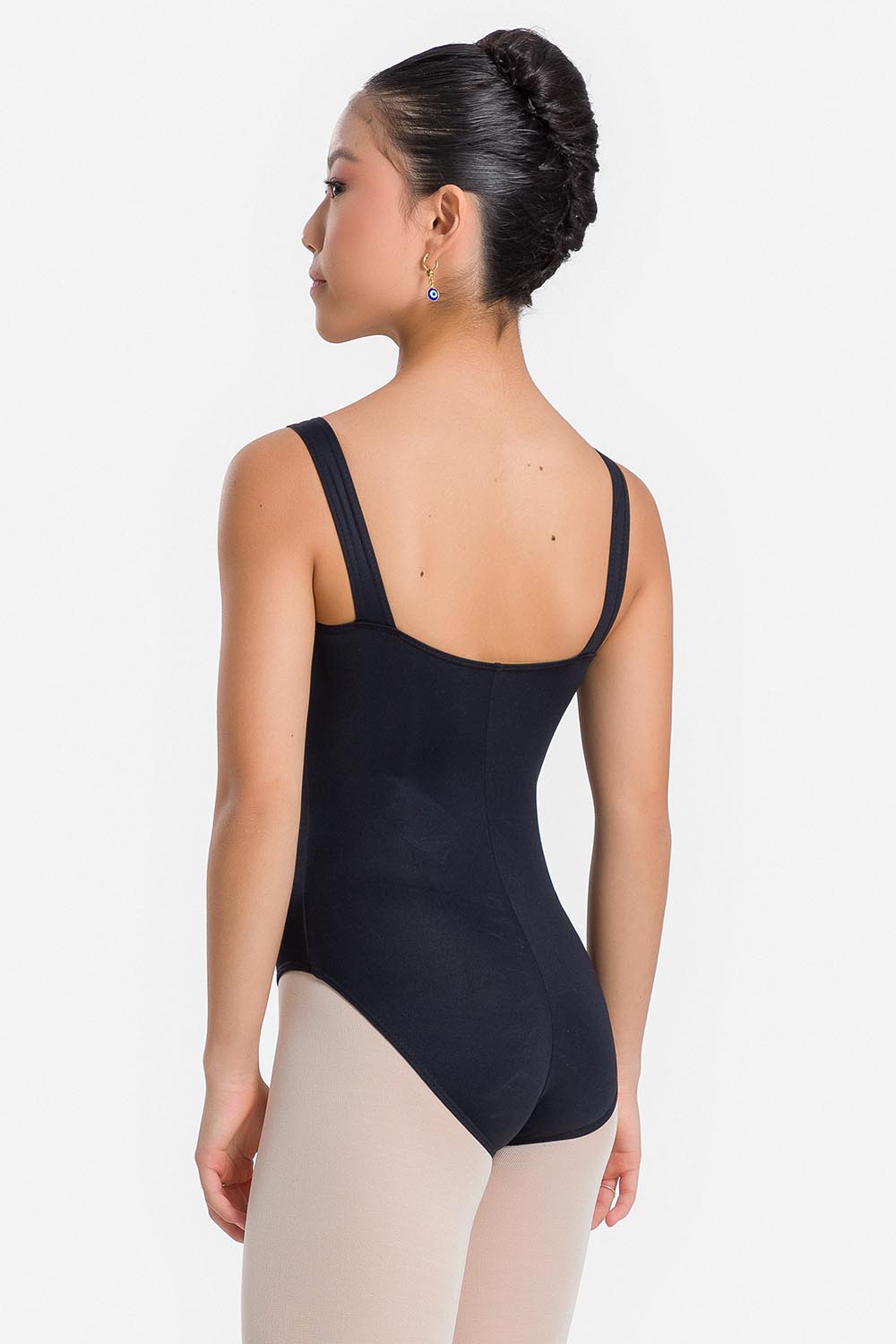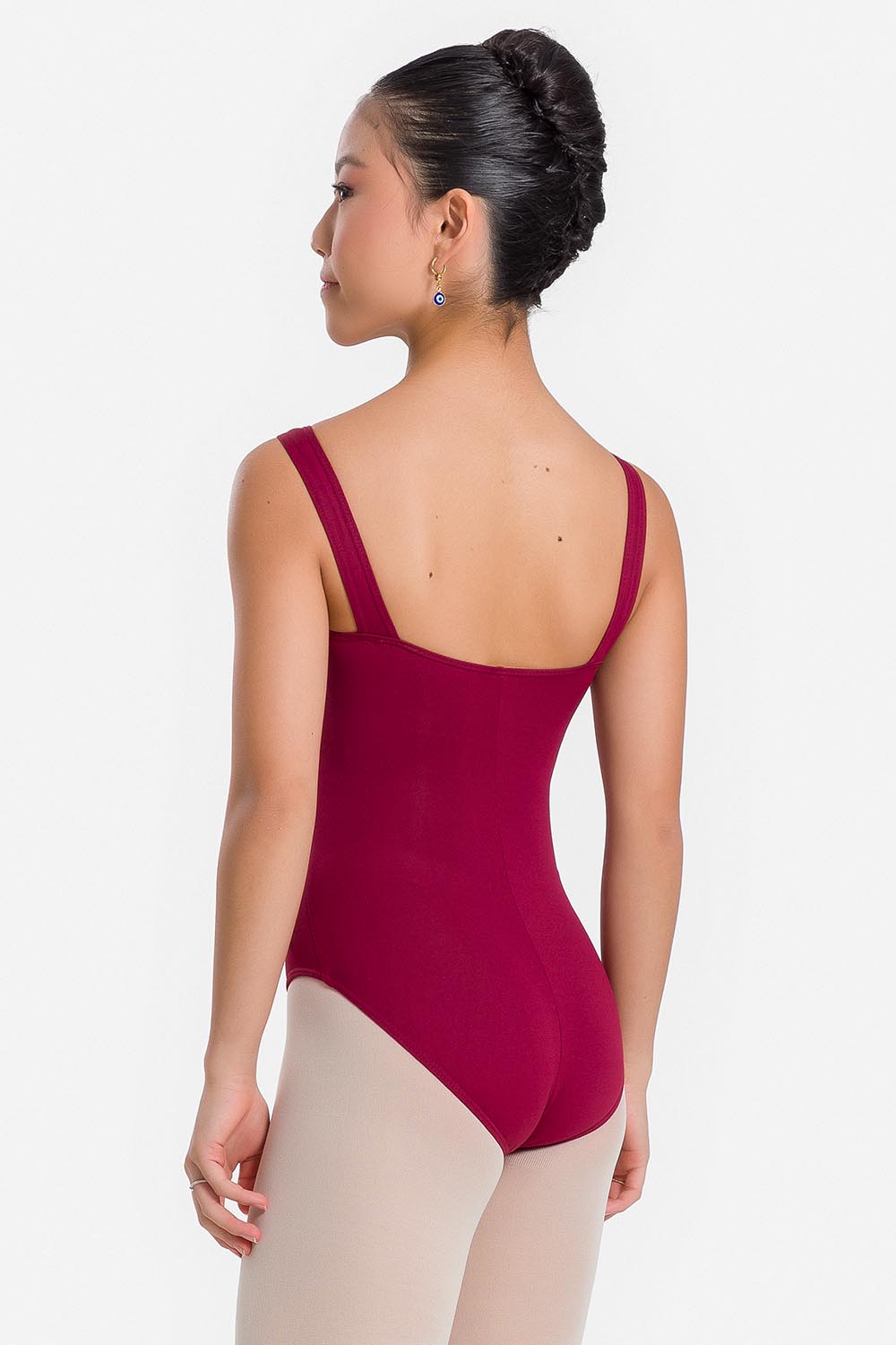 Leotardo femenino adulto con tirantes estrechos, costuras princesa, fruncido en el escote delantero y escote recto en la espalda. Hecho en tela microfibra con elastano en combinación con el exclusivo moldeado Só Dança para que la bailarina se mueva libremente mientras los dobladillos se mantienen fijos en sus debidos lugares, garantizando más comodidad y seguridad.