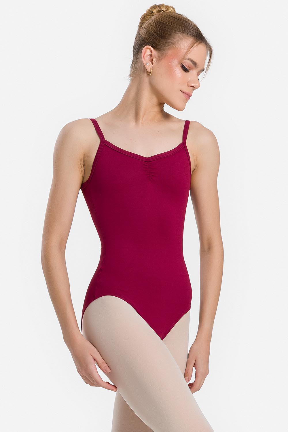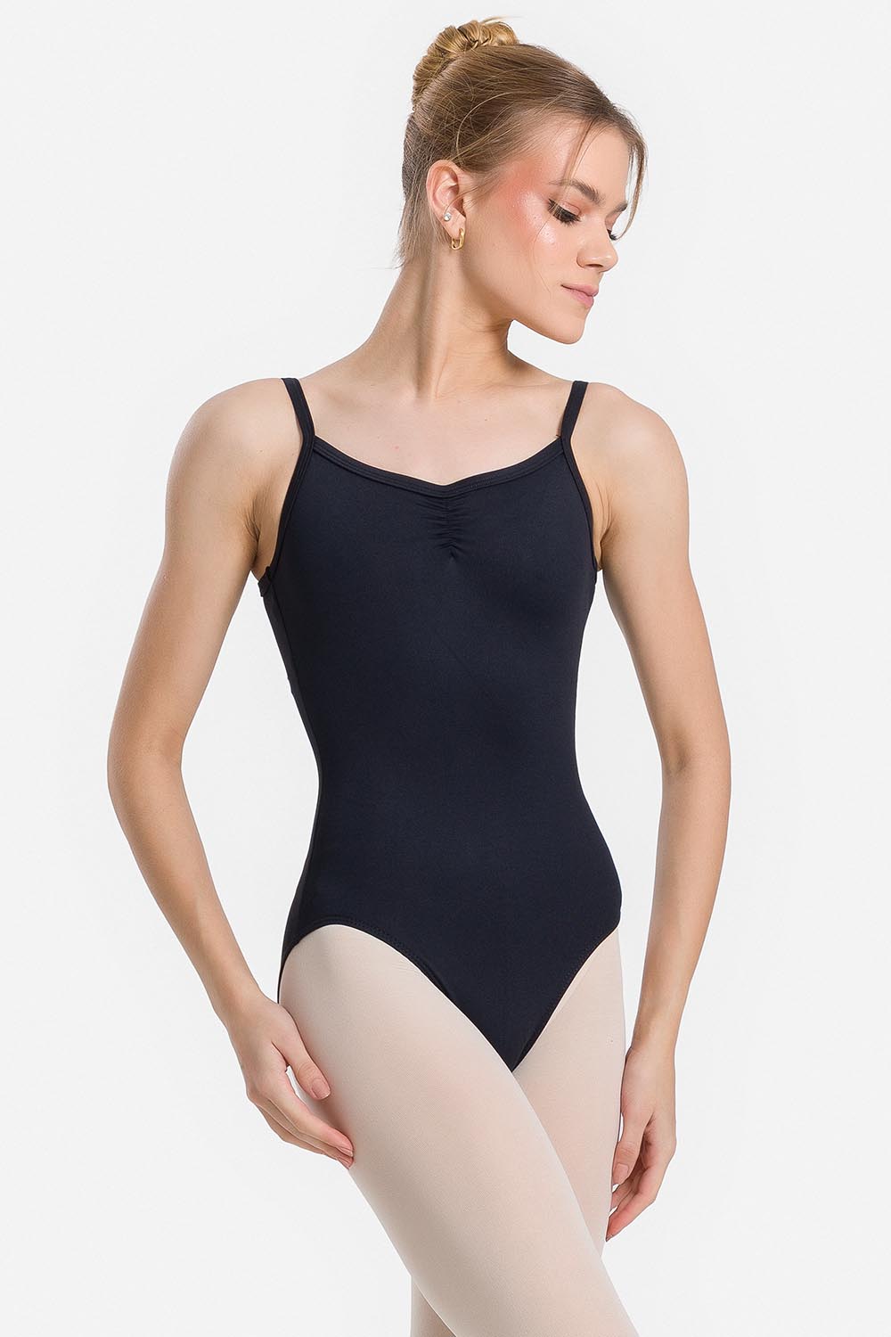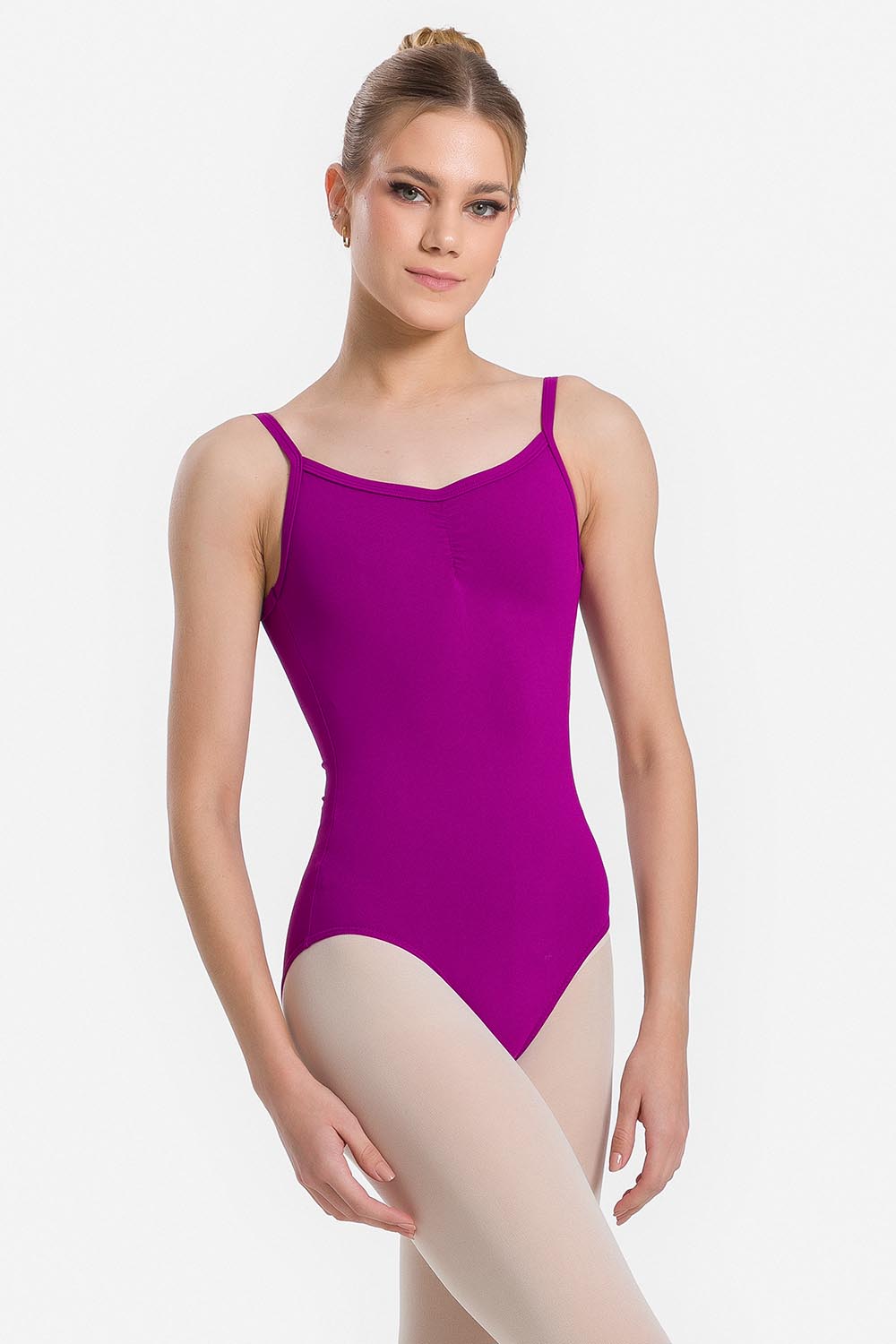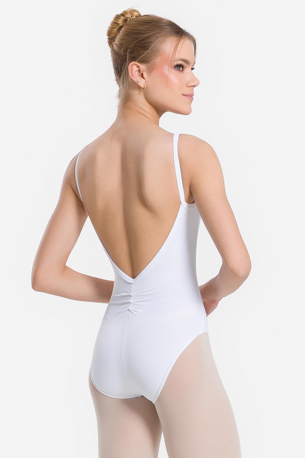 Leotardo femenino adulto en microfibra con tirantes estrechos, fruncido en el escote delantero y en el profundo escote V de la espalda. Hecho en tela microfibra con elastano y el exclusivo moldeado Só Dança para que la bailarina se mueva libremente mientras los dobladillos se mantienen fijos en sus debidos lugares, garantizando más comodidad y seguridad.