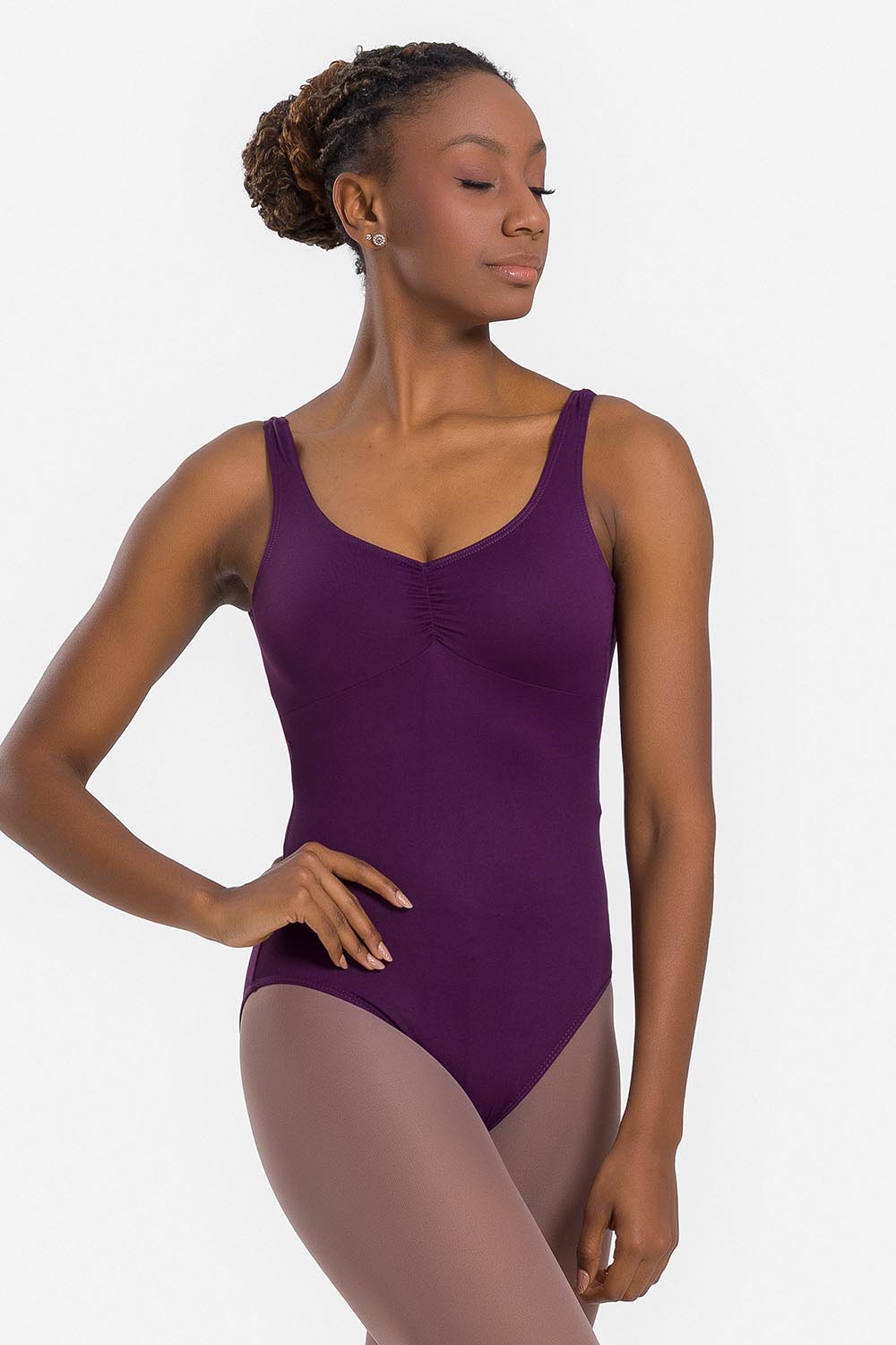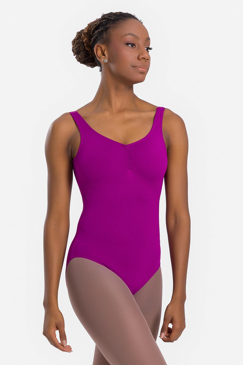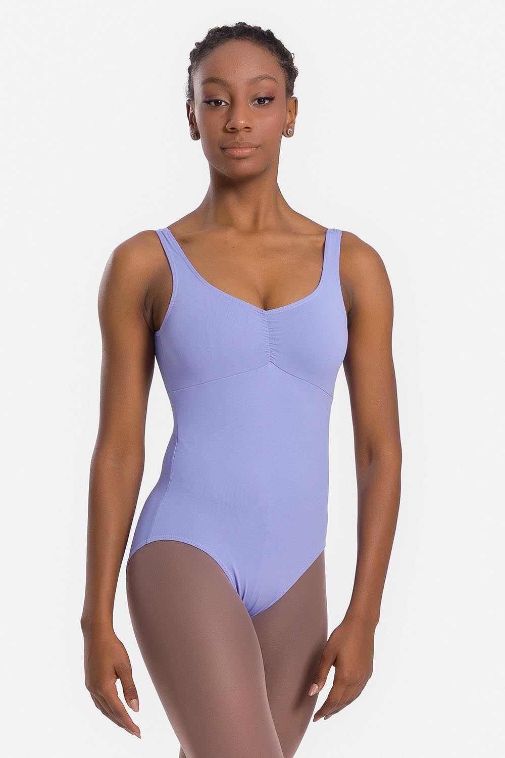 Leotardo femenino adulto con fruncido en el escote delantero, cintura imperial, tirantes anchos y escote cuadrado en la espalda. Hecho en tela de microfibra con elastano y el exclusivo moldeado Só Dança para proporcionar a la bailarina total libertad de movimiento y mantener los dobladillos en sus lugares, añadiendo sensación de bienestar y seguridad a un solo tiempo.