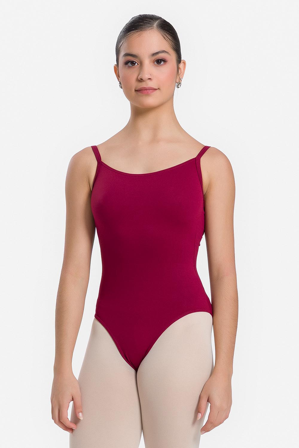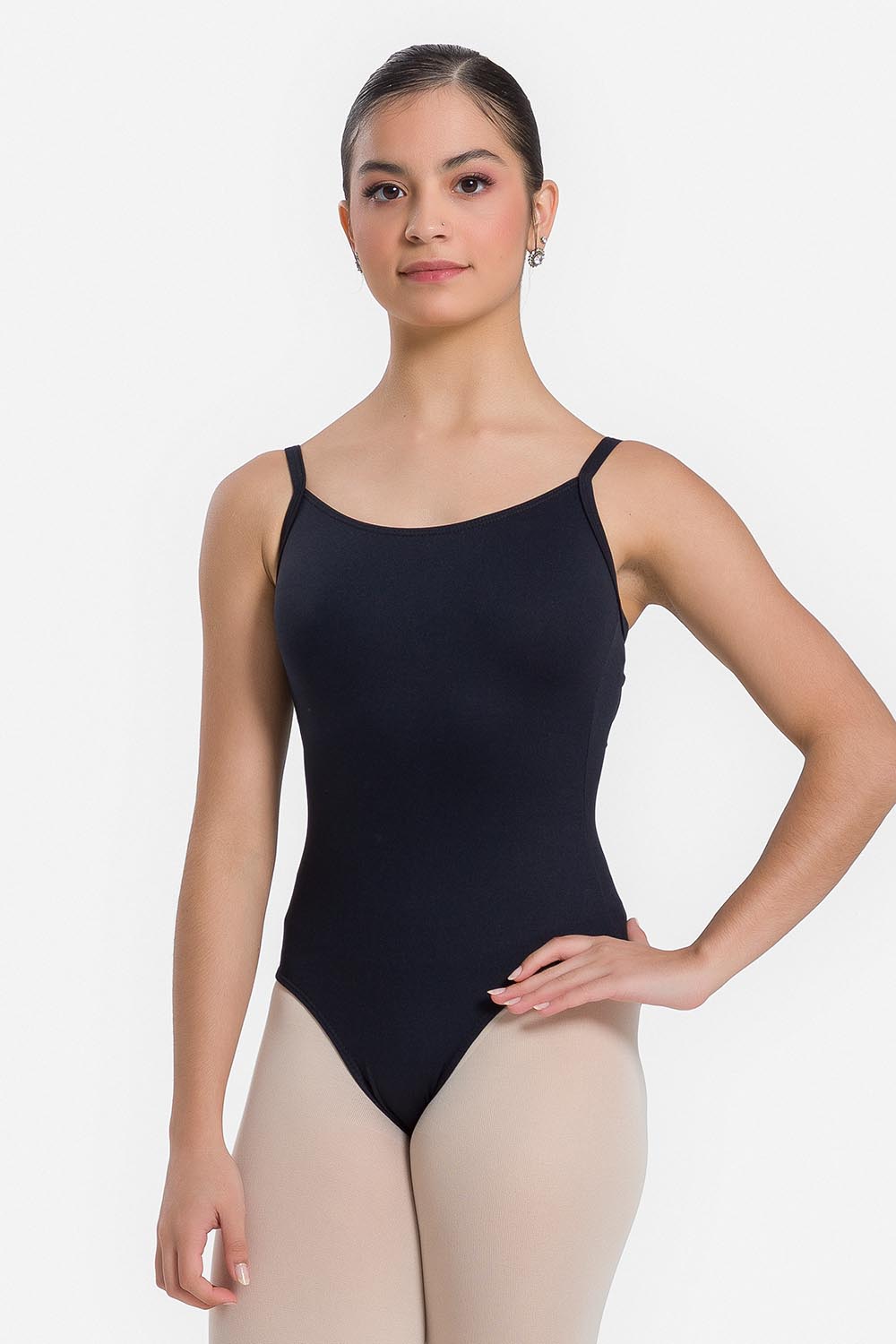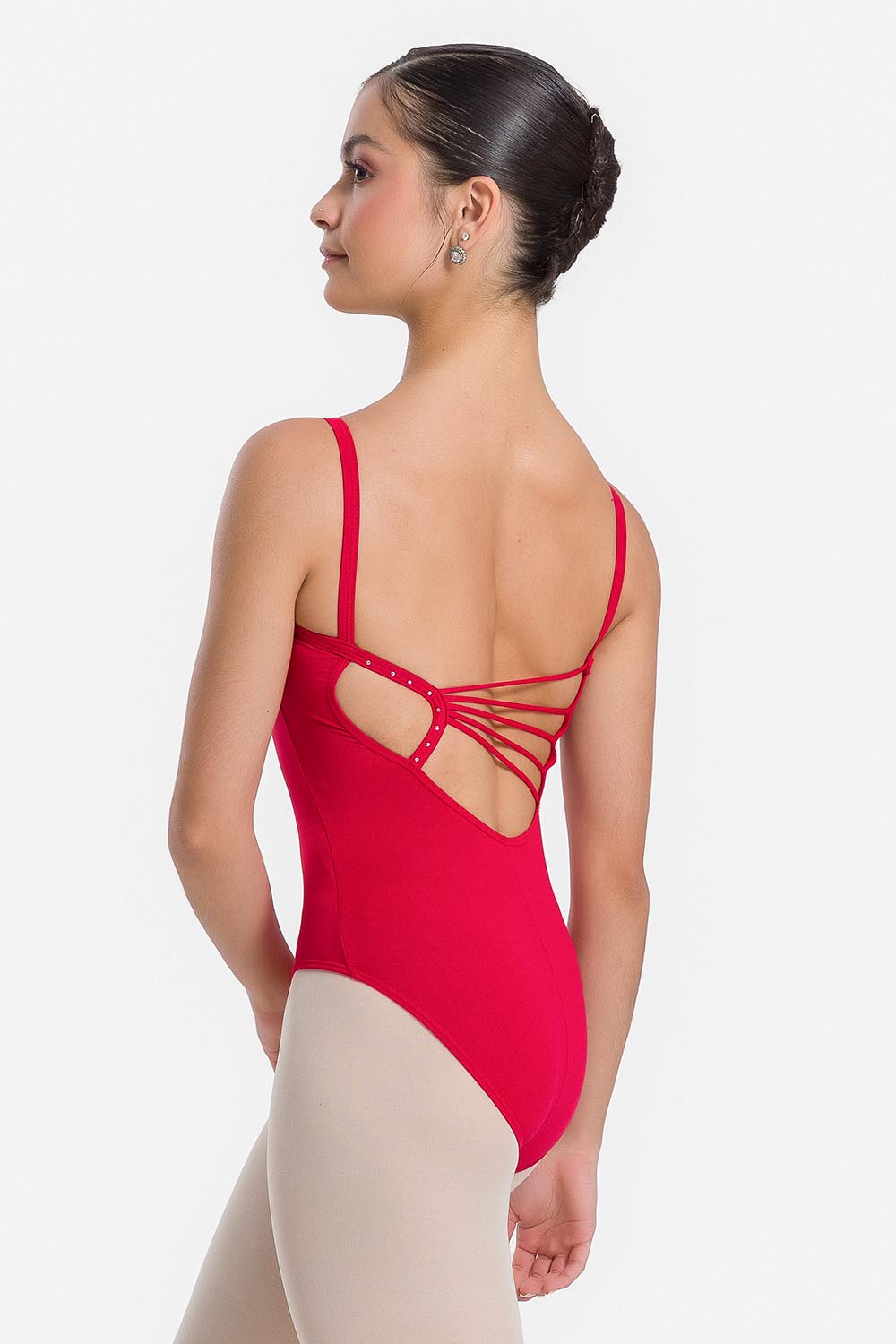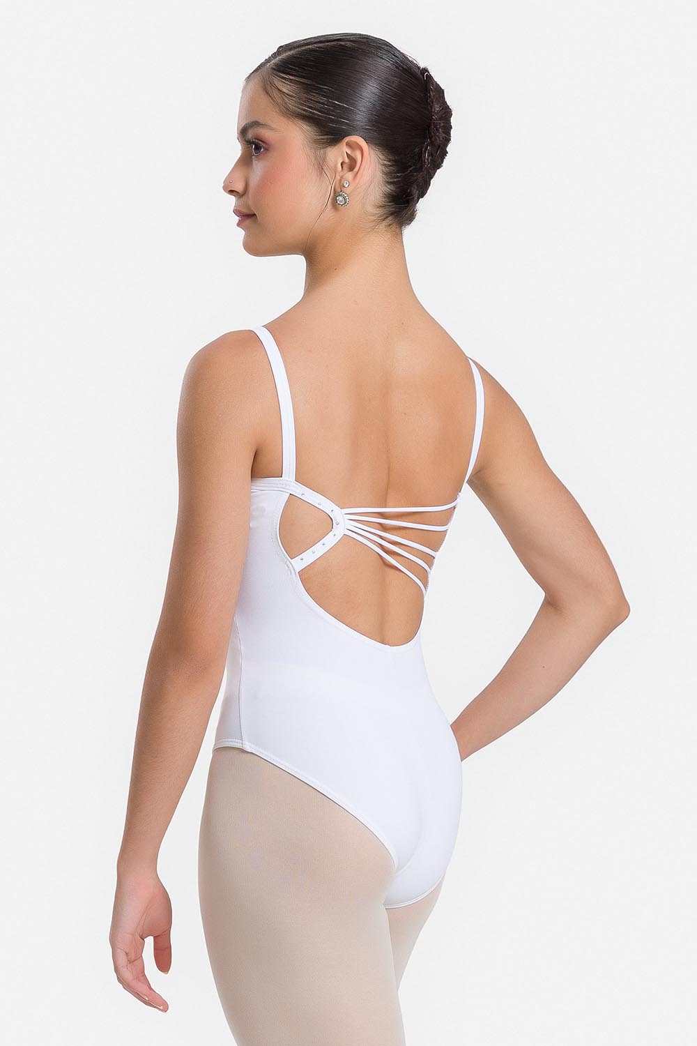 Leotardo femenino adulto tirantes estrechos; escote redondo; detalles de tiras y vidriantes en la espalda. Hecho en tela microfibra con elastano en combinación con el exclusivo moldeado Só Dança para que la bailarina se mueva libremente mientras los dobladillos se mantienen fijos en sus debidos lugares, garantizando más comodidad y seguridad.