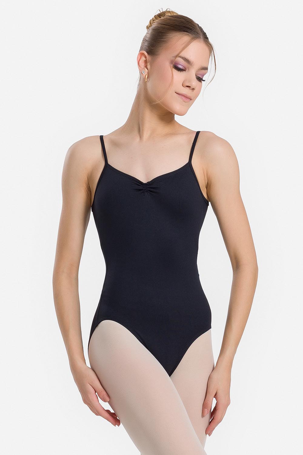 Leotardo femenino adulto en microfibra con ajustables tirantes estrechos, fruncido en el escote delantero y escote redodeando en la espalda. Hecho en tela microfibra con elastano en combinación con el exclusivo moldeado Só Dança para darle a la bailarina total libertad de movimientos mientras los dobladillos se mantienen fijos en sus debidos lugares, garantizando más bienestar y comodidad.