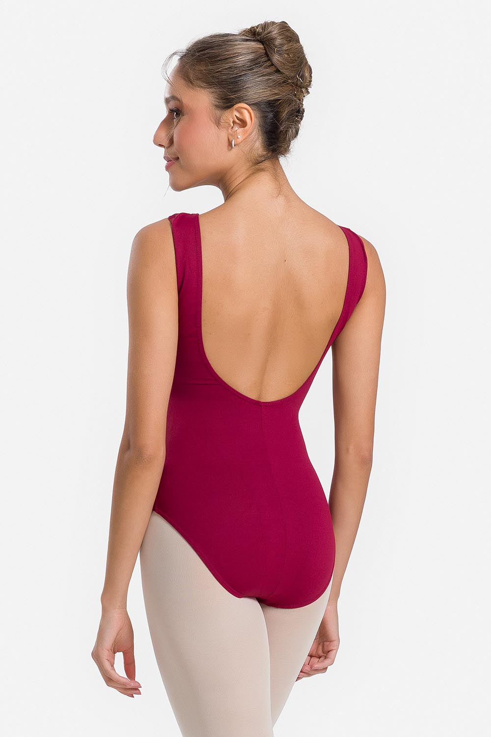 Leotardo femenino adulto sin mangas. Escote barco en la parte delantera y U en la espalda. Hecho en tela de microfibra con elastano y el exclusivo moldeado Só Dança, que mantiene los dobladillos en sus lugares, para ofrecer a la bailarina total libertad de movimientos y promover la sensación de bienestar y seguridad.