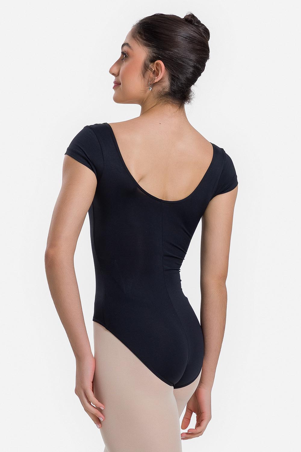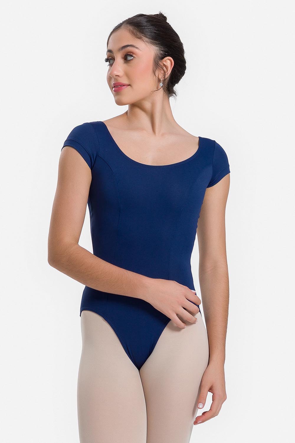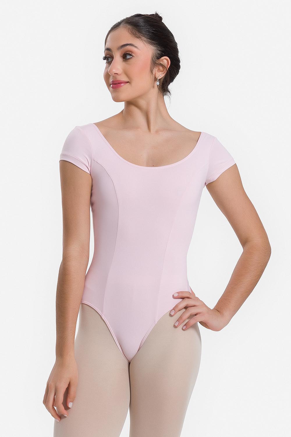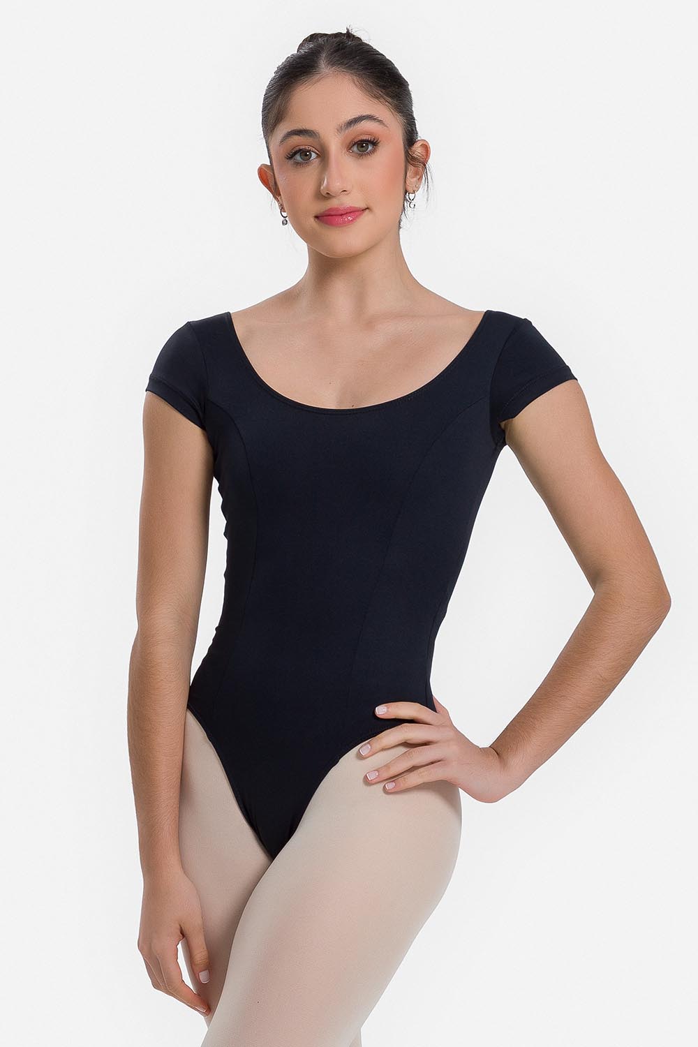 Leotardo femenino adulto con mangas cortas, costuras princesa y escote redondo. Hecho en tela microfibra con elastano en combinación con el exclusivo moldeado Só Dança para que la bailarina se mueva libremente mientras los dobladillos se mantienen fijos en sus debidos lugares, garantizando más comodidad y seguridad.