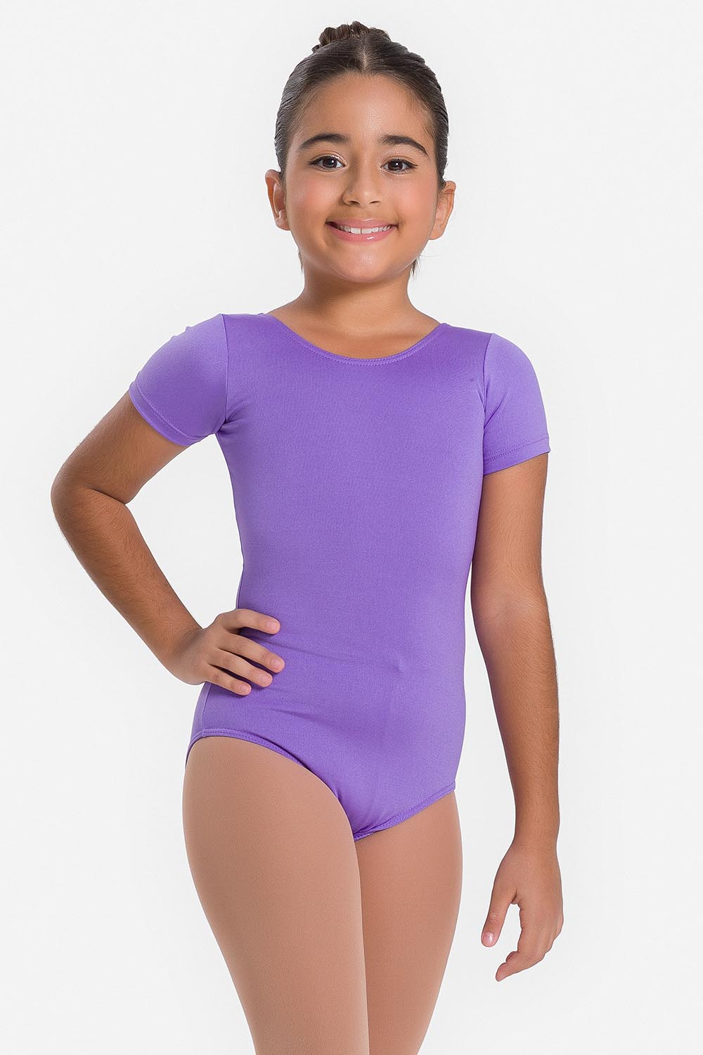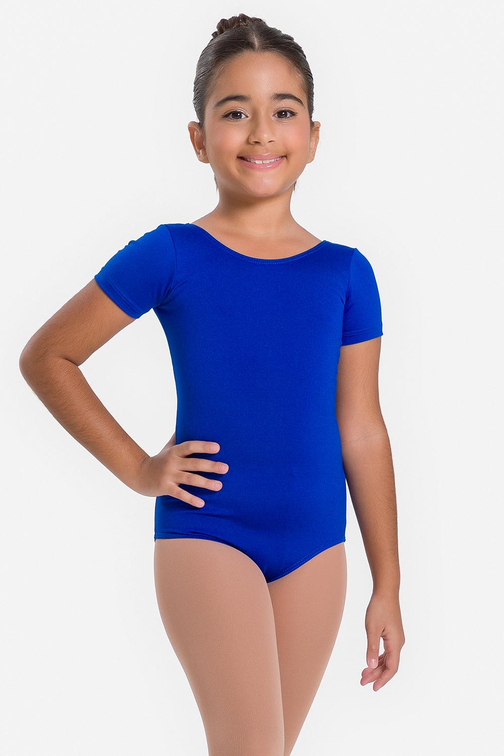 Leotardo femenino en tallas infantil y adulto. Con mangas cortas y escote redondo. Hecho en tela microfibra stretch, para ofrecer libertad de movimiento, en combinación con el exclusivo moldeado Só Dança para que la pequeña bailarina se sienta totalmente libre para moverse sin que los dobladillos se muevan de sus debidos lugares. El forro en la parte delantera dale a las niñas aún más seguridad y comodidad.