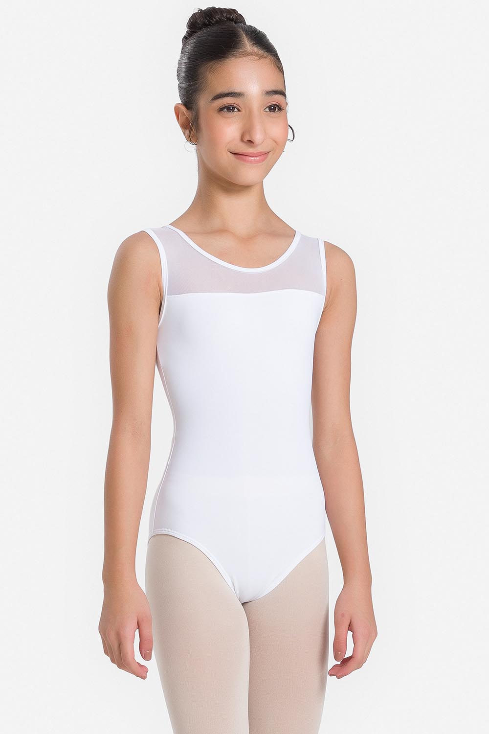 Leotardo femenino infantil sin mangas. Tul elástico insertado en el escote delantero y en la espalda. Hecho en tela de microfibra con elastano y el exclusivo moldeado Só Dança, que mantiene los dobladillos en sus lugares, para ofrecer a la bailarina total libertad de movimientos y promover la sensación de bienestar y seguridad.