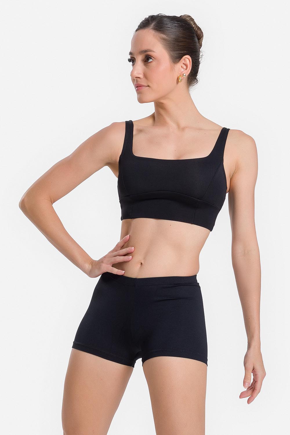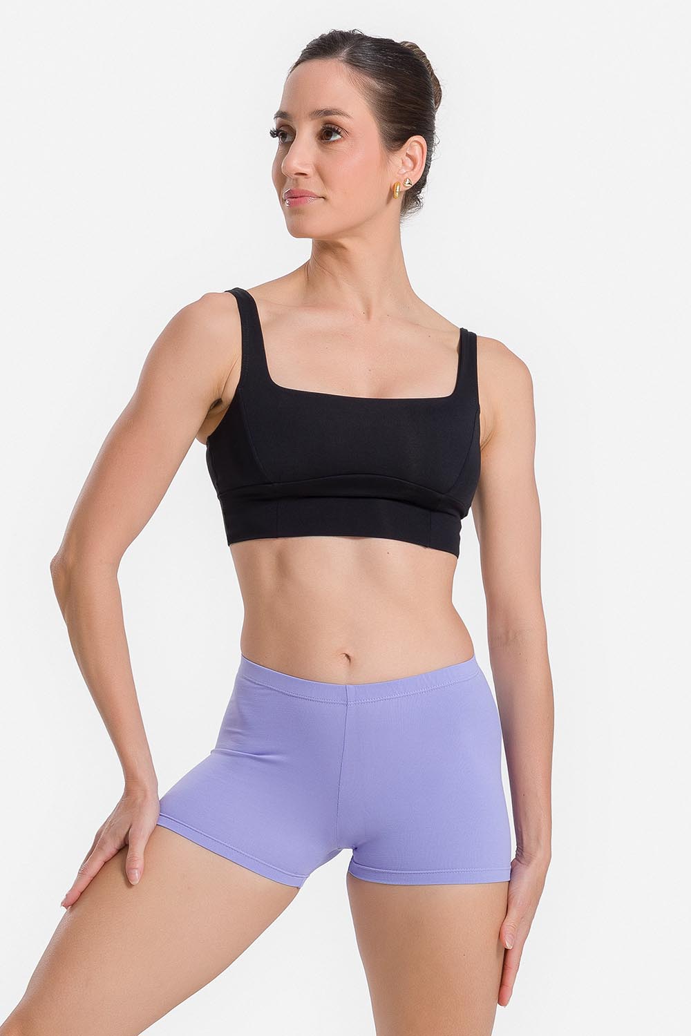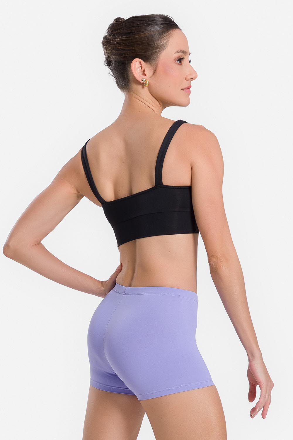 Pantalones cortos femeninos adulto con pretina elástica y entrepierna de 3,2cm. Hechos en tela microfibra con elastano y el exclusivo moldeado Só Dança para que la bailarina se mueva libremente mientras los dobladillos se mantienen fijos en sus debidos lugares, garantizando más comodidad y seguridad.