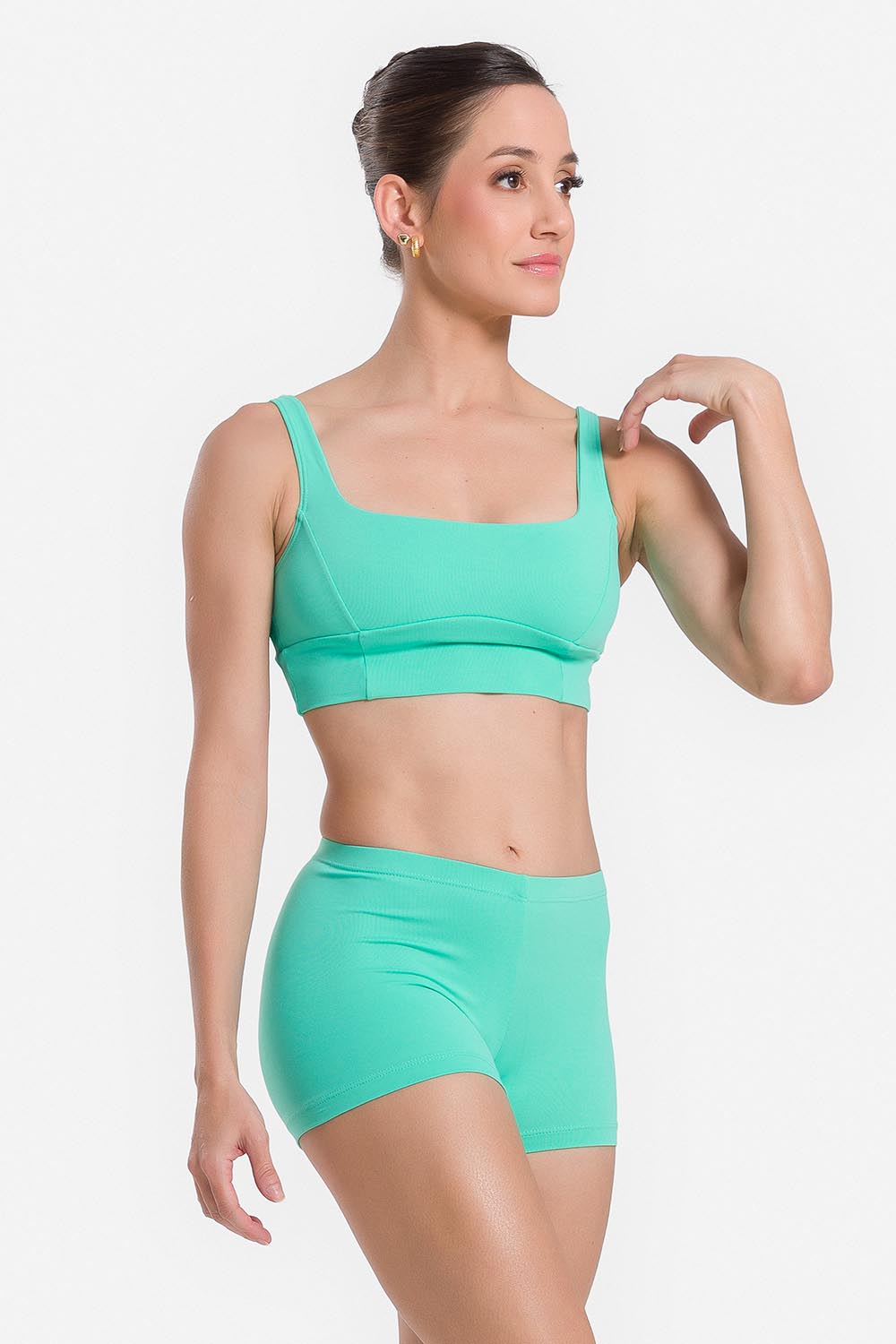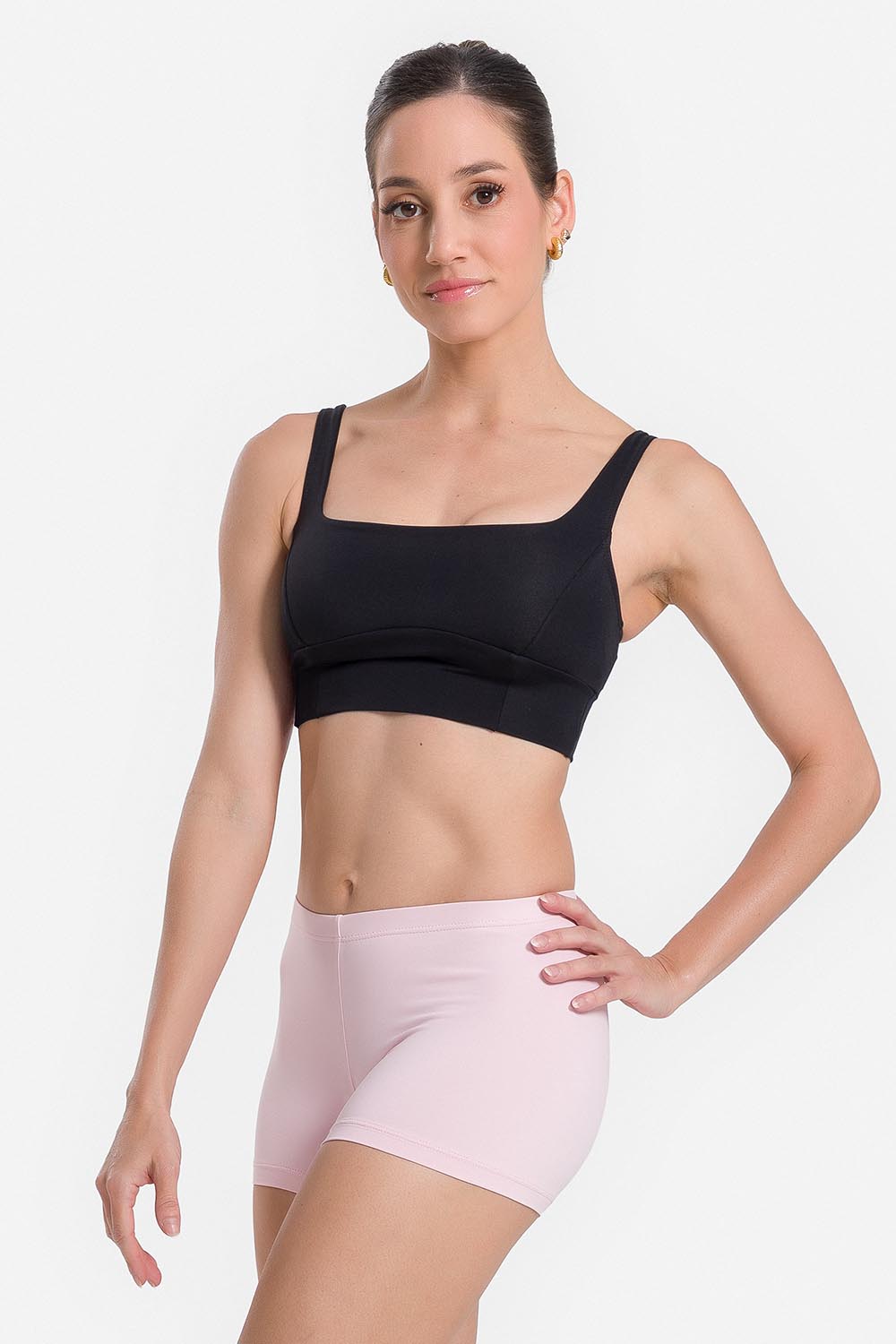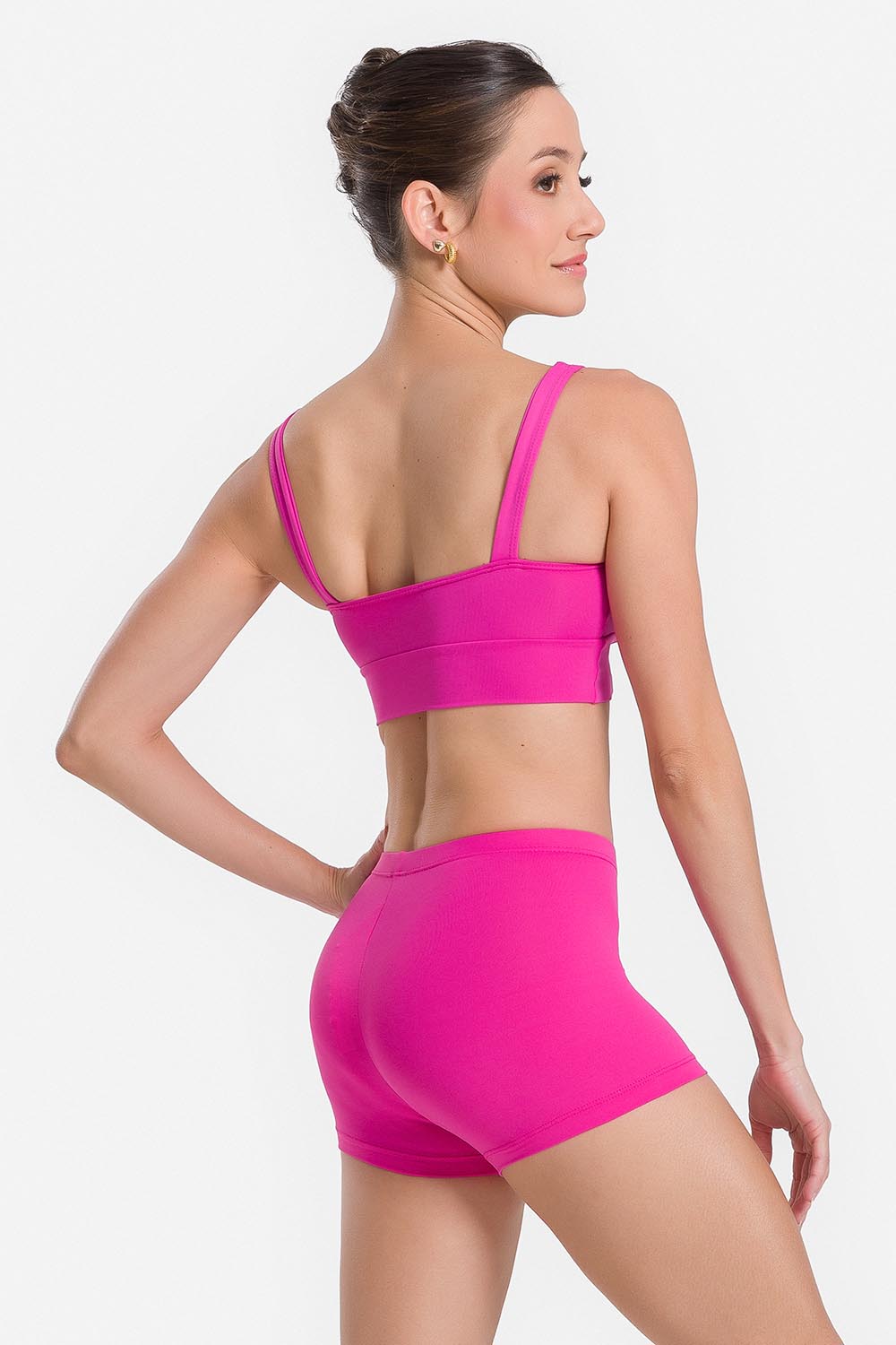 Pantalones cortos femeninos adulto con pretina elástica y entrepierna de 3,2cm. Hechos en tela microfibra con elastano y el exclusivo moldeado Só Dança para que la bailarina se mueva libremente mientras los dobladillos se mantienen fijos en sus debidos lugares, garantizando más comodidad y seguridad.