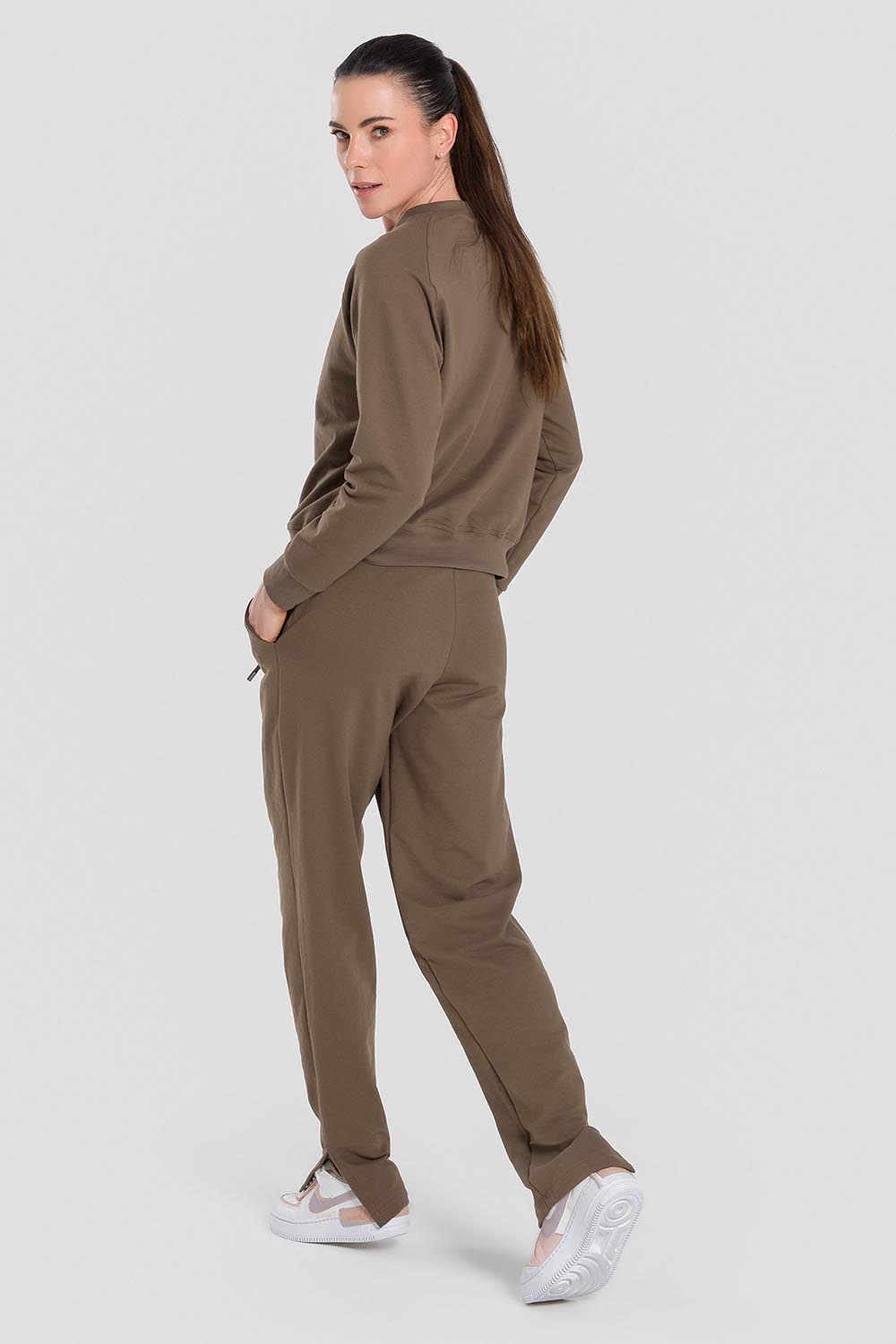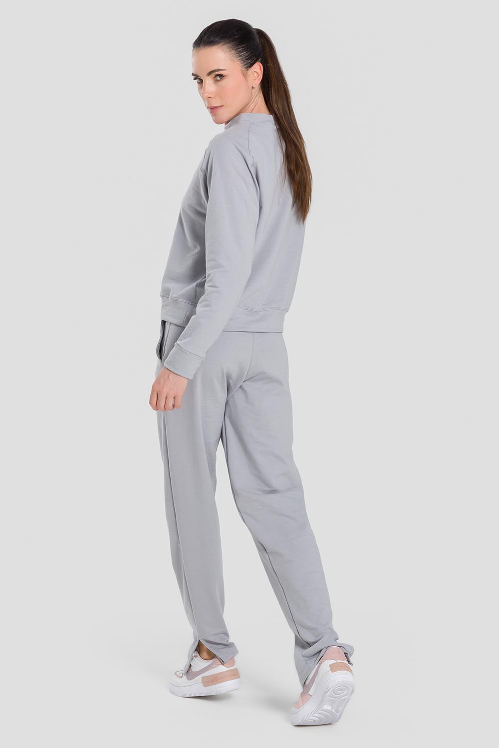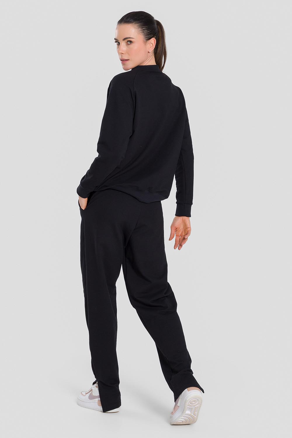 Pantalones femeninos adulto con bolsillos, cordón en la pretina y abertura en los dobladillos. Hechos en tela Sport Fleece, tela súper blanda, compuesta de algodón y poliéster, para calentar y ofrecer comodidad en los días frescos.