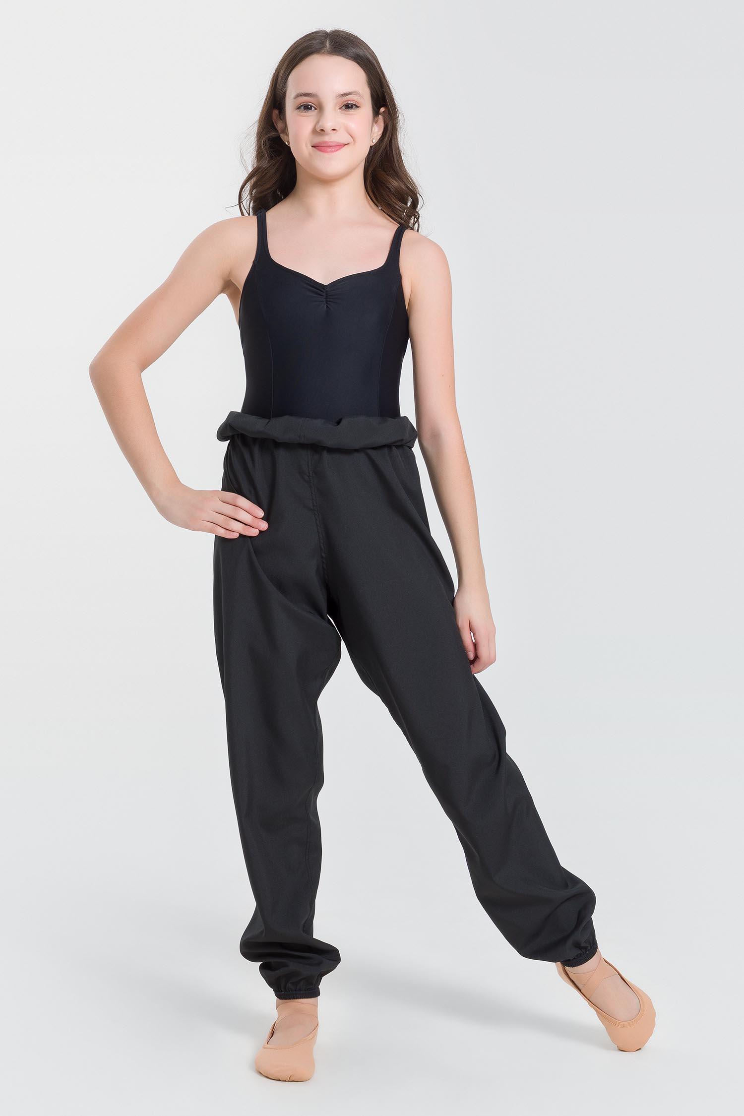 Pantalones calentadores femeninos infantil, de moldeado suelto y elástico en la pretina y dobladillos. Hechos de tela Total Flex para extremada movilidad y comodidad térmica.