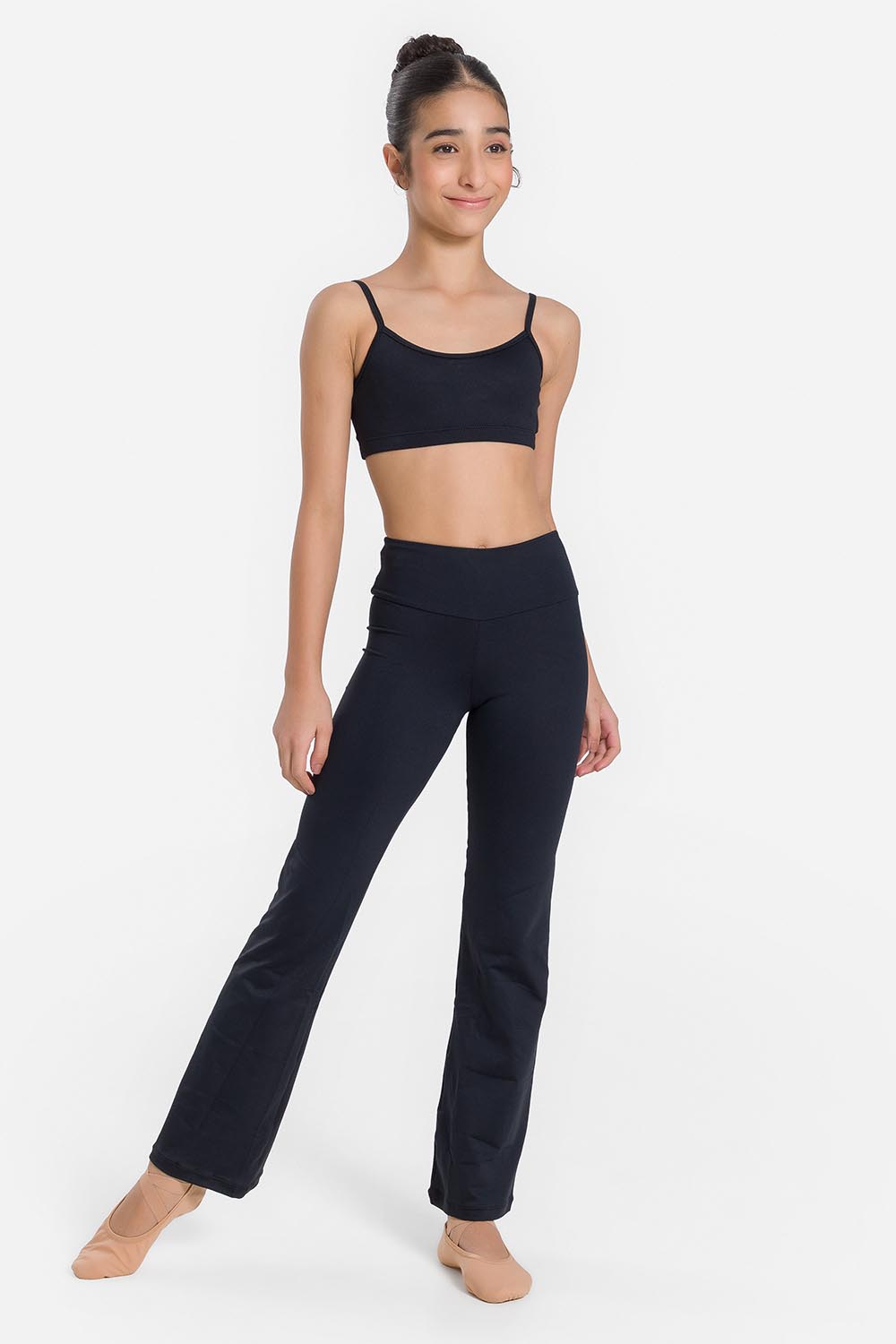 Pantalones femeninos infantiles con pretina ancha. Hechos en tela microfibra con elastano en combinación con el exclusivo moldeado Só Dança para que la bailarina se mueva libremente con más comodidad y seguridad.