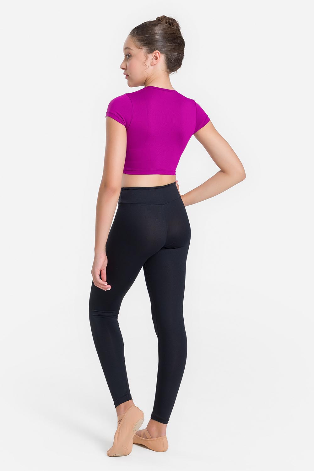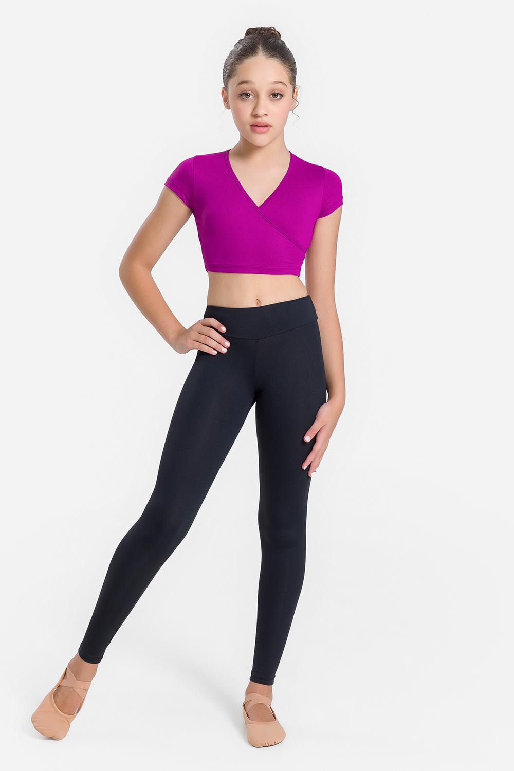 Pantalones Leggings femeninos infantiles con ancha cintura elástica. Hechos de tela microfibra con elastano para la máxima flexibilidad y libertad de movimientos.