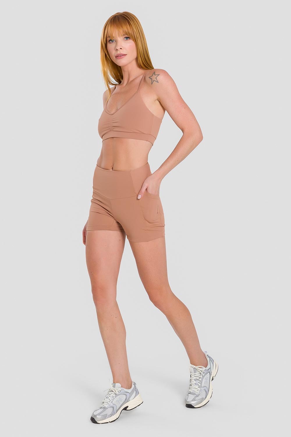 Top adulto de estrechos tirantes, abertura en la espalda y fruncido delantero. Hechos en tela Adaptiv Way, se apariencia opaca, compresión eficiente, extremada comodidad y elasticidad multidirecional, siguiendo todos los movimentos del cuerpo durante las actividades.