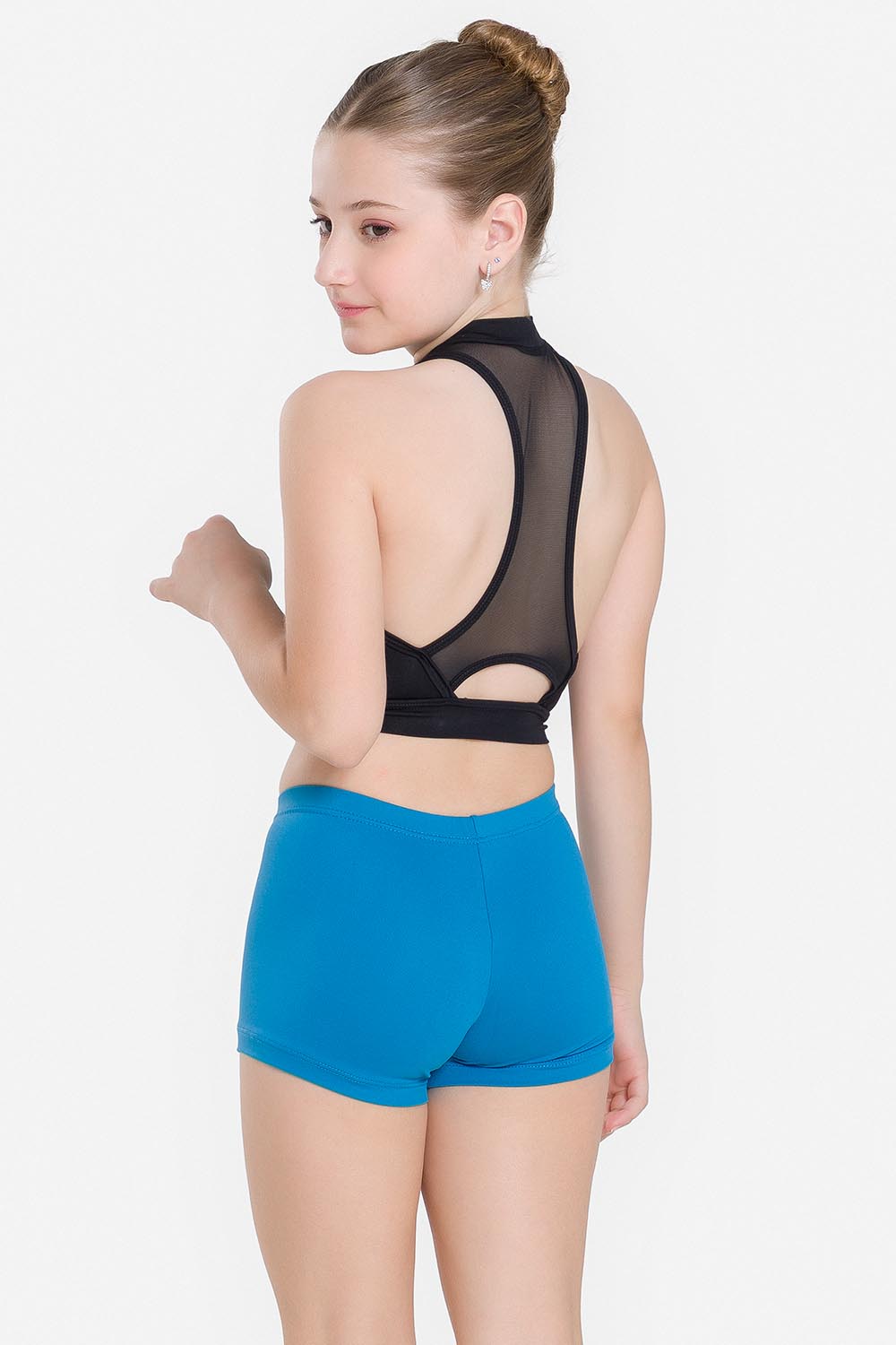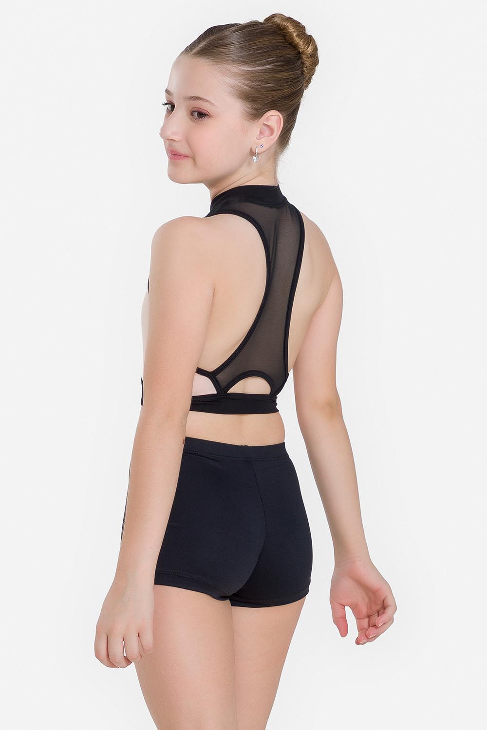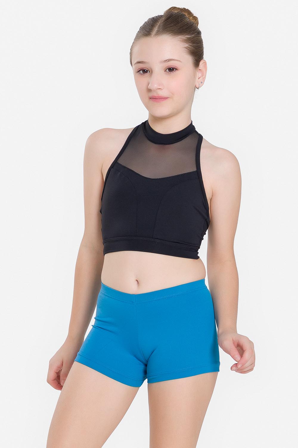 Top infantil con recorte de color contrastante en el busto, dobladillo ancho, cuello alto y espalda de nadador en tul elástico. Hecho en tela microfibra con elastano para brindar el soporte necesario al busto y el exclusivo moldeado Só Dança para que la bailarina se mueva libremente mientras los dobladillos se mantienen fijos en sus debidos lugares, garantizando más comodidad y seguridad.