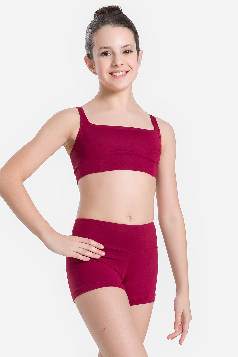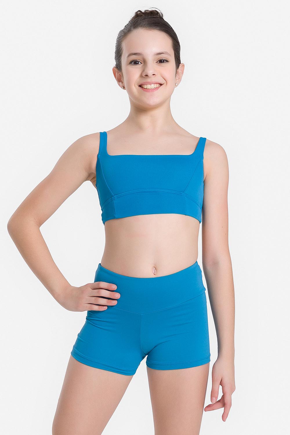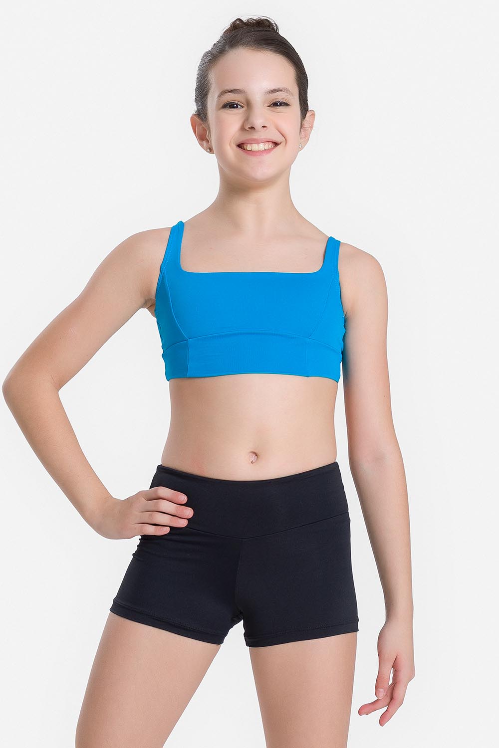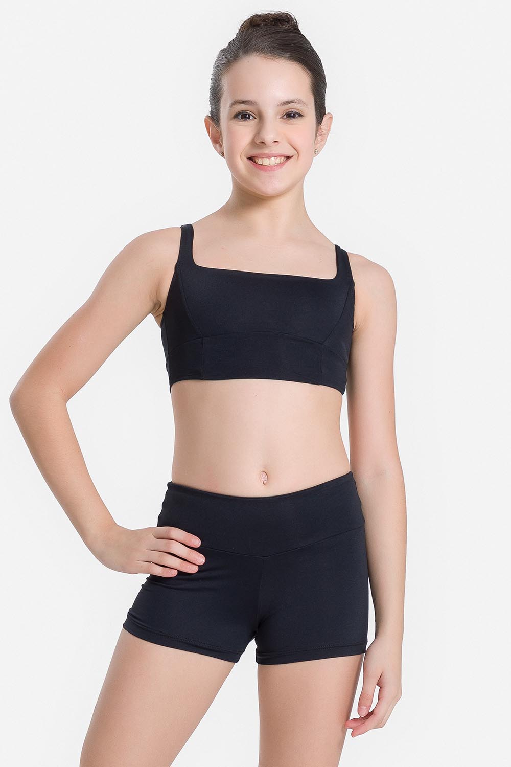 Top infantil con tirantes anchos, recorte en el busto y escote recto. Hecho en tela microfibra con elastano de alta calidad para ofrecer el soporte adecuado al busto y el exclusivo moldeado Só Dança para que la bailarina se mueva libremente mientras los dobladillos se mantienen fijos en sus debidos lugares, garantizando más comodidad y seguridad.